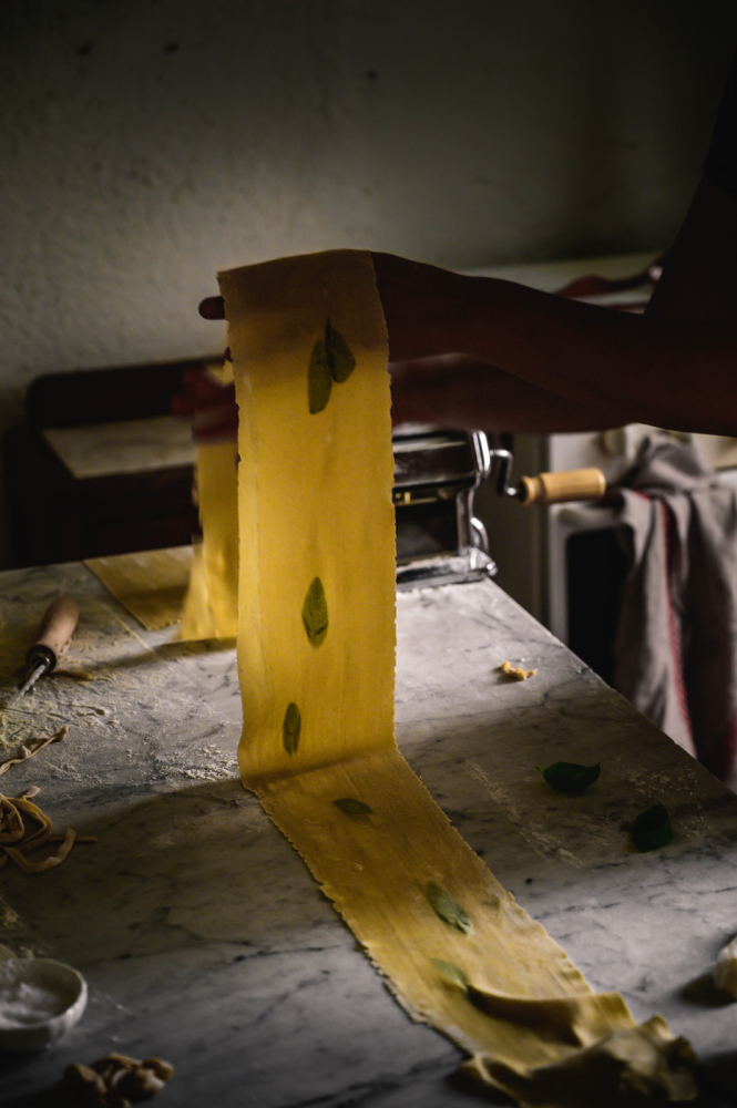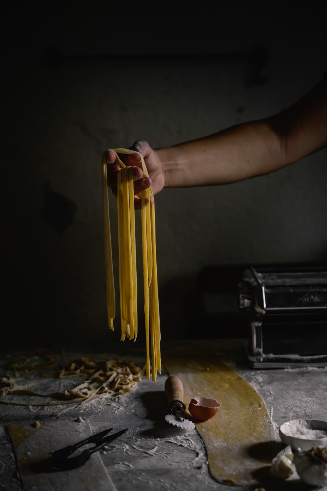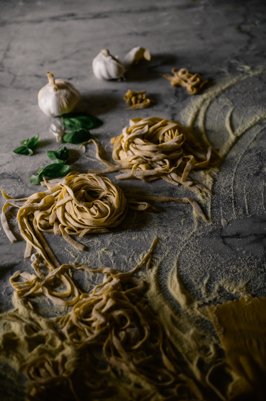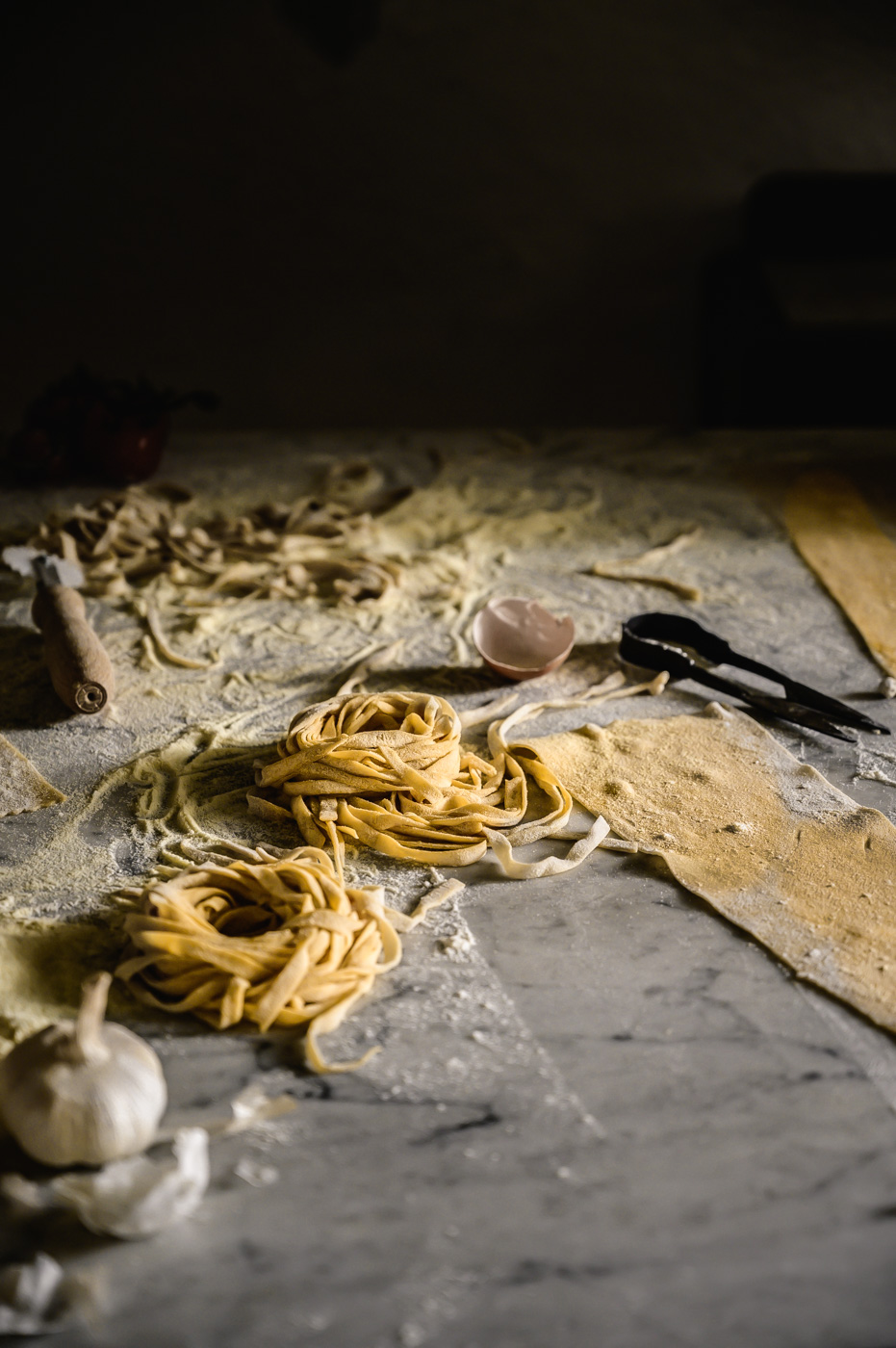 Druhý den byl zahájen tématem, na které jsem se těšila úplně nejvíc! Byla to fotografie a styling pro storytelling. Aneb nejen postupové fotografie u receptu. Jedná se v podstatě o komplexního pocit z fotky, který máte, když na ni koukáte. Je to ale těžká disciplína vám povím. Teorii jsme opět dostaly v lejstrech, praxe spočívala v přípravě domácích těstovin. Ježíši, to bylo tak skvělý! Nejdříve jsme se bavily o kompozici, holky nám vysvětlily nějaké zásady a pak se šlo na věc. Každá z účastnic si povinně vyfotila všechny kroky přípravy. Po jednotlivých fotkách vždy následovala konzultace vlastní fotky s holkama, ale i účastnicemi. Bylo to opravdu šíleně inspirativní, jak každá z nás to jídlo viděla trochu jinak, z jiného úhlu atd. Holky nám přitom radily a fotily taky, aby nám ukázaly, jak to má ideálně vypadat. Pomohly mi třeba i s nastavením foťáku, úpravou ISO atd. Byla jsem totiž zvyklá fotit na úplně jiné nastavení, takže i tady jsem se přiučila. 🙂 Celou dobu jsem si navíc dělala zápisky, takže jsem měla hlavu jako pátrací balon.