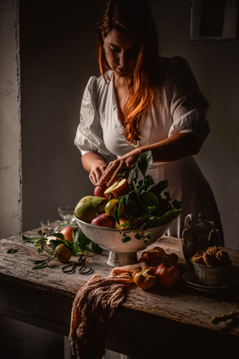 Odpoledne nás čekal speciální host, kterým byla éterická malířka a italská food blogerka Valentina Solfrini. Můžete ji znát z jejího IG účtu @valentinahortus. Je to umělkyně každým coulem a její téma pro nás byly především barvy a její pohled na kompozici. Její pohled byl neskutečně zajímavý, inspiruje se starými holandskými obrazy jídla a když jsme stylovali misku s ovocem, připadala jsem si, jako kdyby nás přenesla do 17.století mezi ty nejlepší malíře. U stylování vyprávěla, jak o tom přemýšlí, co ráda dělá a naopak, jakým chybám se vyvaruje. Hltala jsem každé její slovo, dělala si zápisky a při každé příležitosti jsem cvakla nějakou tu fotku. 🙂 Podle mě moje hlava už vypadala jako tři pátrací balony dohromady. 😀