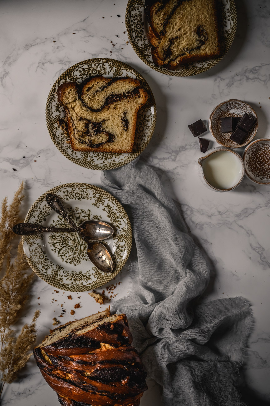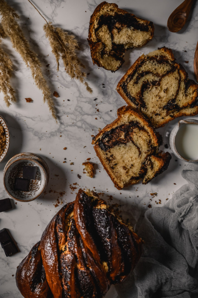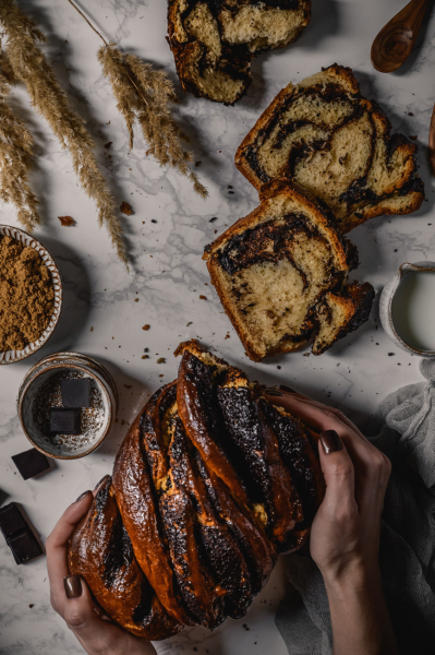 Babka je tradiční židovské sladké pečivo, nejpopulárnější v Izraeli. V roce 2010 se velmi rychle rozšířilo v oblasti USA, především v New Yorku, kde ji proslavil jeden izraelský pekař. Babku teď peče celý svět a já jsem opravdu nadšená, že vám mohu představit svůj recept. 🙂 Vycházela jsem opět ze své filosofie – nepoužívám sušené droždí, když máme to štěstí a v ČR je dostupné to čerstvé, použila jsem pravou vanilku, spoustu másla (ne Heru plnou palmového tuku!), čerstvé mléko a vejce od šťastných slepic. Pokud nemáte přírodní vanilkový extrakt (prodává M&S a zdravé výživy) nebo nechcete kupovat jeden vanilkový lusk za 100 Kč (ano, cena je stále vyšší a vyšší), vanilku raději vynechte, než abyste používali umělé náhrady, které jsou chuťově nedobré, padají na jazyk a kazí tak výslednou chuť pokrmu. 🙂 Bohatě postačí chuť čokoládové náplně. Pokud máte mé kuchařky, na začátku najdete návod, jak si udělat nekonečný domácí vanilkový extrakt nebo domácí vanilkový cukr, tak se mrkněte a už se tímhle problémem nebudete muset nikdy zabývat. 🙂