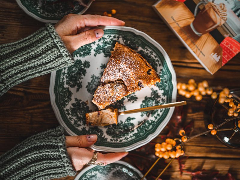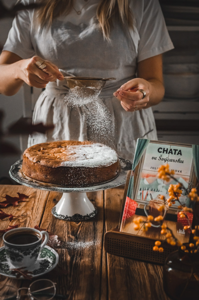 Tenhle koláč bych nazvala sladkou nádivkou. A překvapivě je výborný. Aby ne, když jsou v něm samé dobré věci, i když musím se přiznat, že když jsem četla kombinaci máslové sušenky, staré housky, třešně a mleté mandle, trošku jsem se zalekla. 😀 Mám ale ráda výzvy, a tak jsem ji přijala. Koláč jsem pekla k nové knížce Chata ve Švýcarsku od Julie Caplinové, kterou jsem dostala k recenzování. Tento koláč se totiž v knize objevuje. 🙂 Každopádně, pokud zkoušíte rádi nové recepty, tento je pro vás jako dělaný! Recept jsem dostala přímo od autorky, pouze jsem si dovolila trošku víc vysvětlit jednotlivé kroky, jak jste u mě zvyklí. 🙂