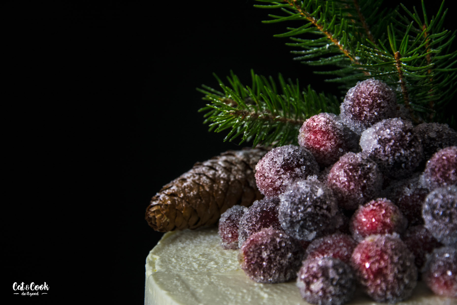 Nakonec dort ozdobte brusinkami v cukru.