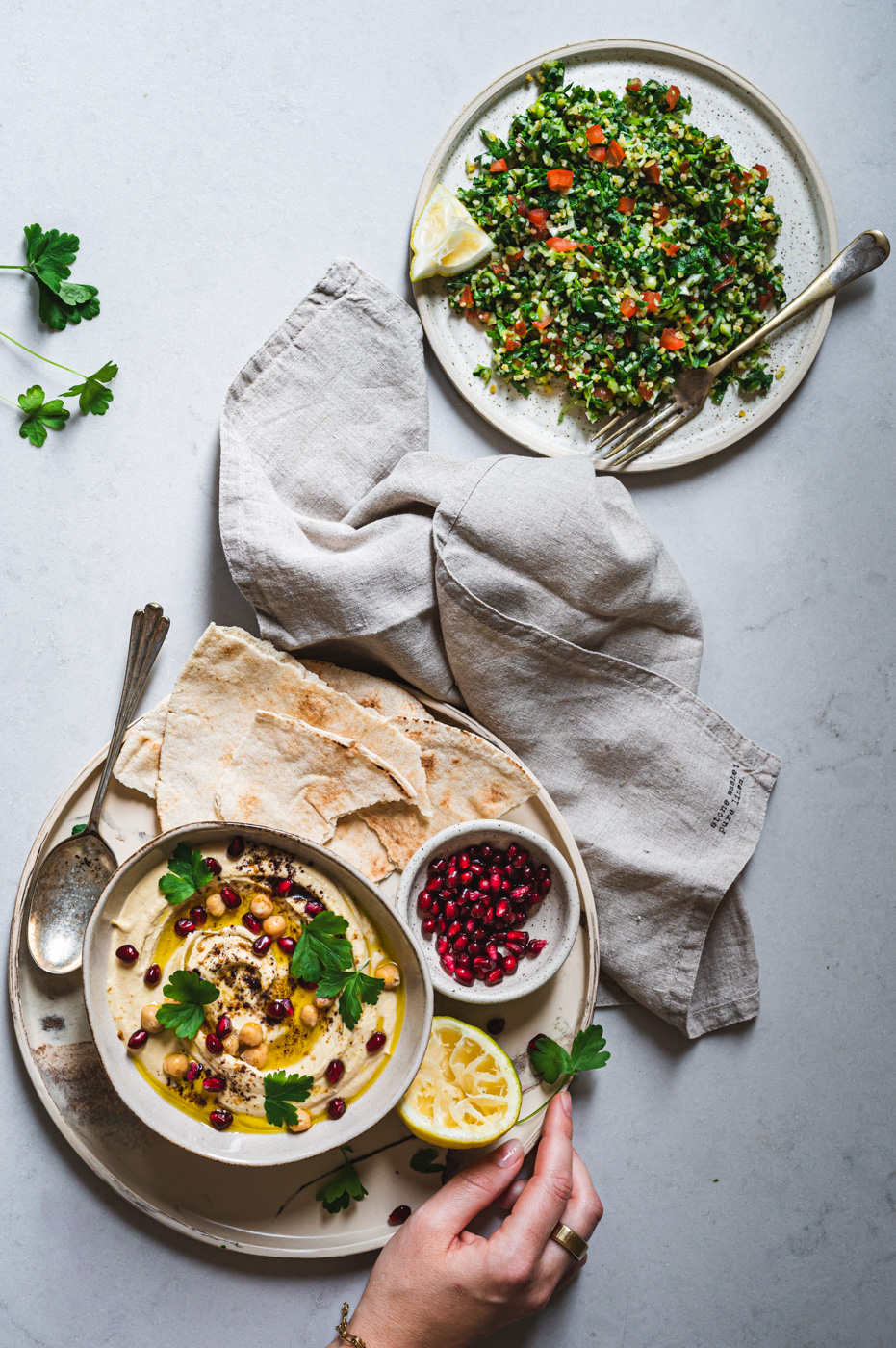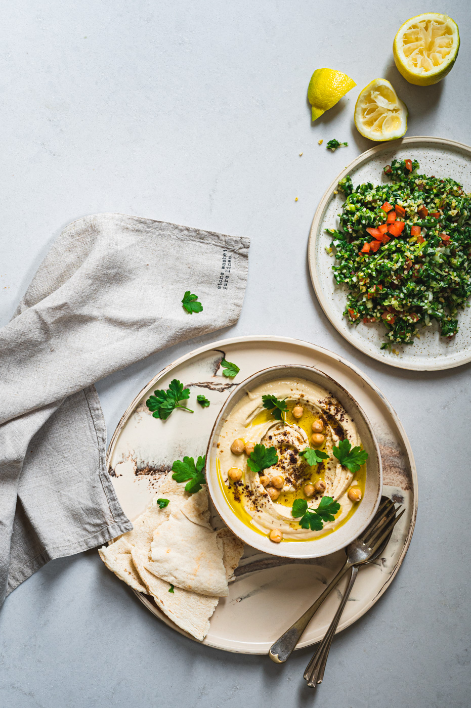 Pravý hummus by měl být velmi jemný a sametově hladký. Nejlépe toho dosáhnete, když připravíte hummus ze sušené cizrny – jako to mám ve své první kuchařce. Takový hummus je zkrátka dokonalý a určitě ho doporučují vyzkoušet! 🙂 Aleee, každému z nás se občas stane, že nemá čas den předem namáčet sušenou cizrnu a potřebuje nějakou rychlovku. 🙂 Přesně pro takové příležitosti jsem připravila tento recept a rovnou jsem k němu přidala i výborný svěží salát tabbouleh, který hummus perfektně doplní.