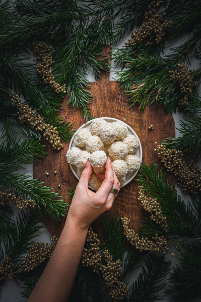 Po pár kuličkách se vraťte k těm prvním a když už budou tuhnout, opatrně je dotvarujte. Až je budete mít hotové, vložte ztuhnout do lednice a poté je naskládejte do uzavíratelné nádoby. Spotřebujte do 14 dnů. 🙂