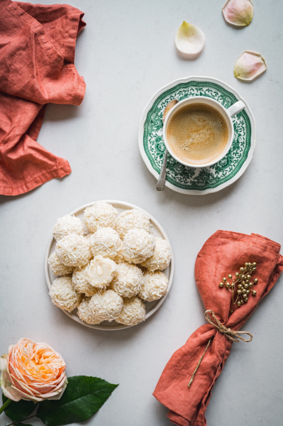 V první řadě říkám, že je to sraní! 😀 ALE, stojí to za to. Chtěla jsem vymyslet recept, který se bude opravdovému Raffaellu hodně podobat. Hlavním úkolem byl krémový střed, který mi u těch „profláklých“ internetových receptů chybí. Zároveň jsem nechtěla zapojovat profesionální formy, které byste složitě sháněli a nebo by si to velká část z vás kvůli tomu rozmyslela.