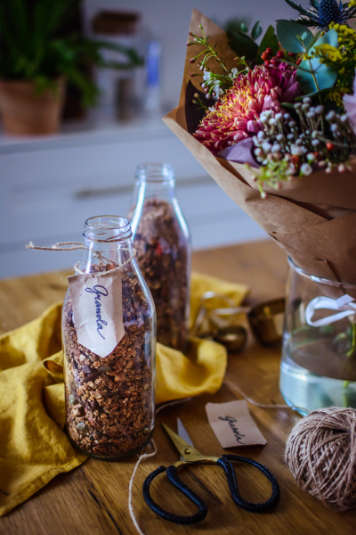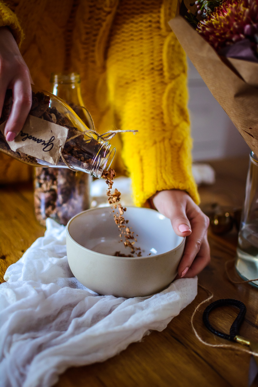 Co se týká tohoto receptu, tak jsem ho dělala přesně podle svých chutí. Každou surovinu z toho miluju a musím říct, že výsledek je geniální. Na granole je super, že si ji můžete přizpůsobit a hlavně – pokud si ji připravíte doma, tak přesně víte, co jste si do ní dali. Žádná éčka, umělá aromata a barviva, méně cukru, alternativní sladidla atd. Prostě bomba! 🙂