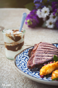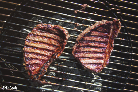 Gril rozpalte přibližně na 250 stupňů. Maso lehce pokapejte olivovým olejem a promněte v rukou, musí být obalené ze všech stran, ale olej by z masa neměl kapat, jinak by se gril vznítil. Položte ho na mřížku a opékejte, dokud se maso samo nepustí. Poté otočte kleštěmi (hlavně do něj nikdy nepíchejte, jinak vyteče šťáva) a opékejte ideálně na medium rare, cca 3 minuty. Teploty jsou uvedeny níže. Na grilování si určitě kupte vpichový teploměr a kontrolujte teplotu jako profík! Steak vyndejte z grilu (kleštěmi, bez píchání), přendejte na hlubší talíř, položte na něj kostičku másla a volně přikryjte alobalem. Nechte ho 5 – 10 minut odpočinout (toto je nezbytný krok, aby se v mase vyrovnaly všechny šťávy, v opačném případě by všechna šťáva vytekla ven a váš steak by byl suchý). Maso řádně osolte, opepřete.