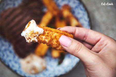 Jestli se mi někdy něco povedlo, byl to objev halloumi hranolek 🙂 Ať už si k tomu dáte brambory a budete se tvářit, že máte bezlepkovej smažák nebo si je dáte místo hranolek, šíleně si pochutnáte!