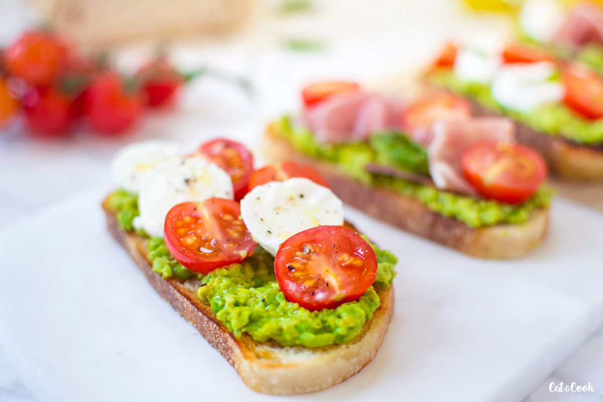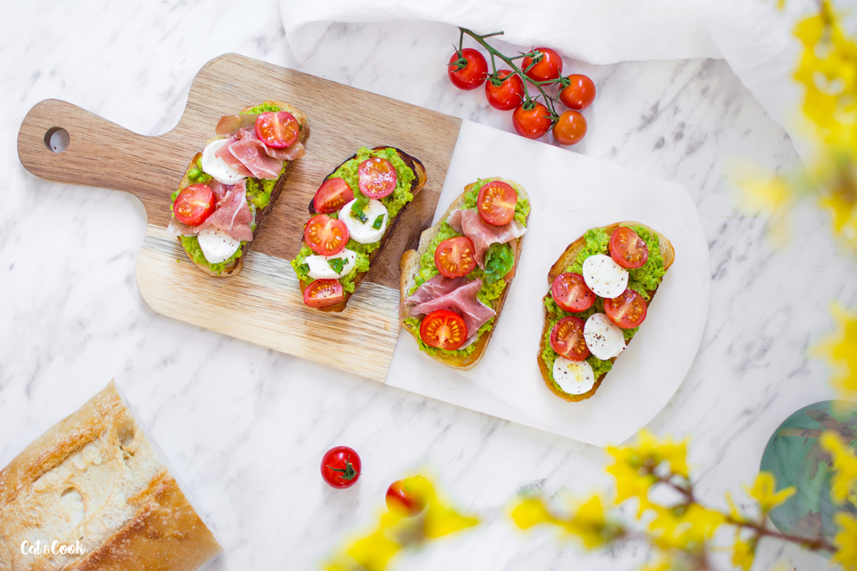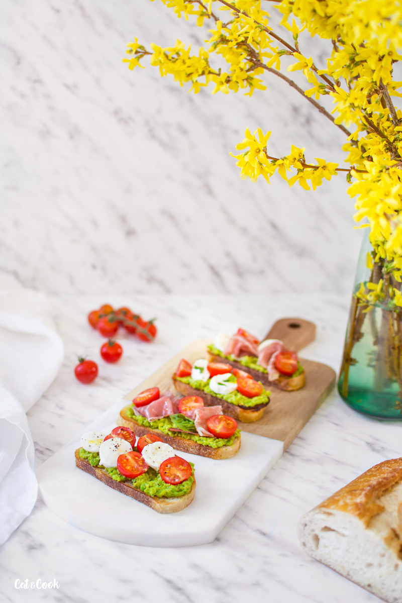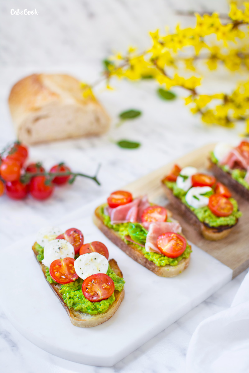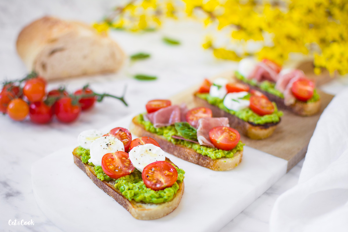 Dneska pro vás mám svěží italské topinky zvané bruschetta. Připravila jsem je s hráškem, mozzarellou a rajčátky. Musím říct, že tyhle jsou zatím moje nejoblíbenější 🙂 Jsou fakt super, vyzkoušejte je třeba k večeři nebo jako rychlý oběd.