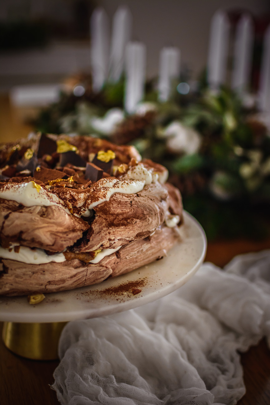 Troubu rozpalte na 120 stupňů. Připravte si pečicí papír na plech a nakreslete na něj 2 stejně velká kolečka (5 cm od sebe) o průměru 20 – 23 cm. Pokud se vám kolečka nevejdou na jeden plech, bez obav použijte plechy dva. Sníh rozdělte na poloviny a lžící nebo stěrkou ho rozprostřete na nakreslená kola, dokonalost není u tohoto dortu vítána, ba naopak, nedokonalost je základem úspěchu. Vložte do trouby a snižte teplotu na 90 stupňů. Bílkové korpusy sušte 4,5 – 5 hodin. Musím ale podotknout, že záleží především na vaší troubě. Naprosto stěžejní informací při přípravě tohoto dezertu je troubu neotevírat! Pokud ji otevřete, pusinky spadnou a budou z nich jen placky. Až se pusinky budou zdát vysušené tak akorát (měly by vypadat křupavě na povrchu a měkce uvnitř – nebojte, napotřetí už budete přesně vědět), vypněte troubu a nechte je dojít. Opět ji neotevírejte. Až po hodině ji lehce pootevřete a počkejte, až bude mít pokojovou teplotu. Pokud jsou korpusy správně upečené, půjdou krásně sundat z pečicího papíru. Ze zkušenosti platí, že je lepší Pavlovu lehce přesušit, než nedosušit, proto ji tam nechte klidně těch 5 hodin.