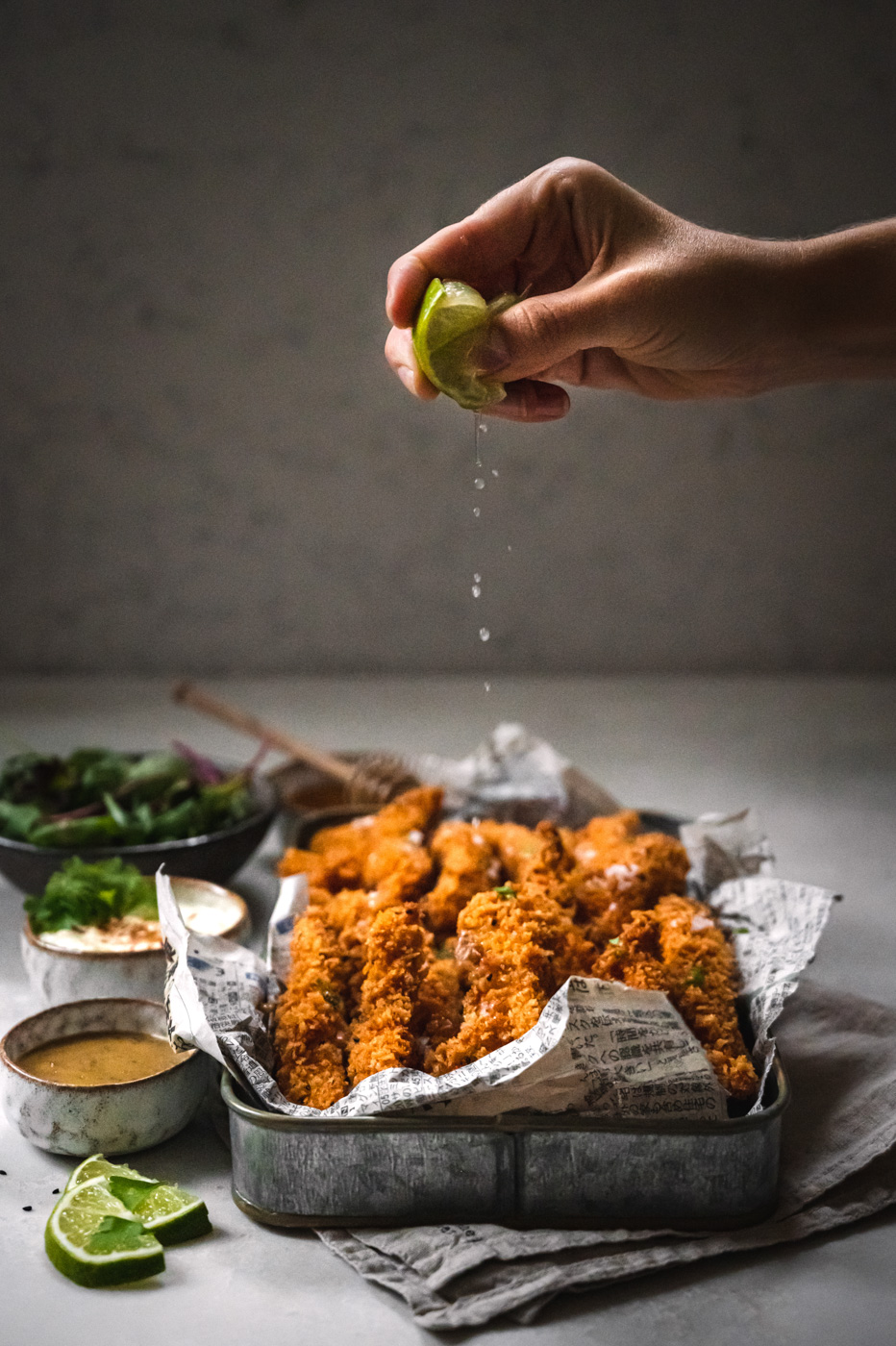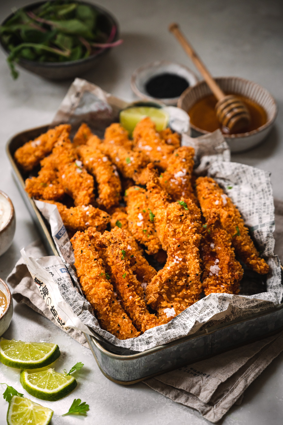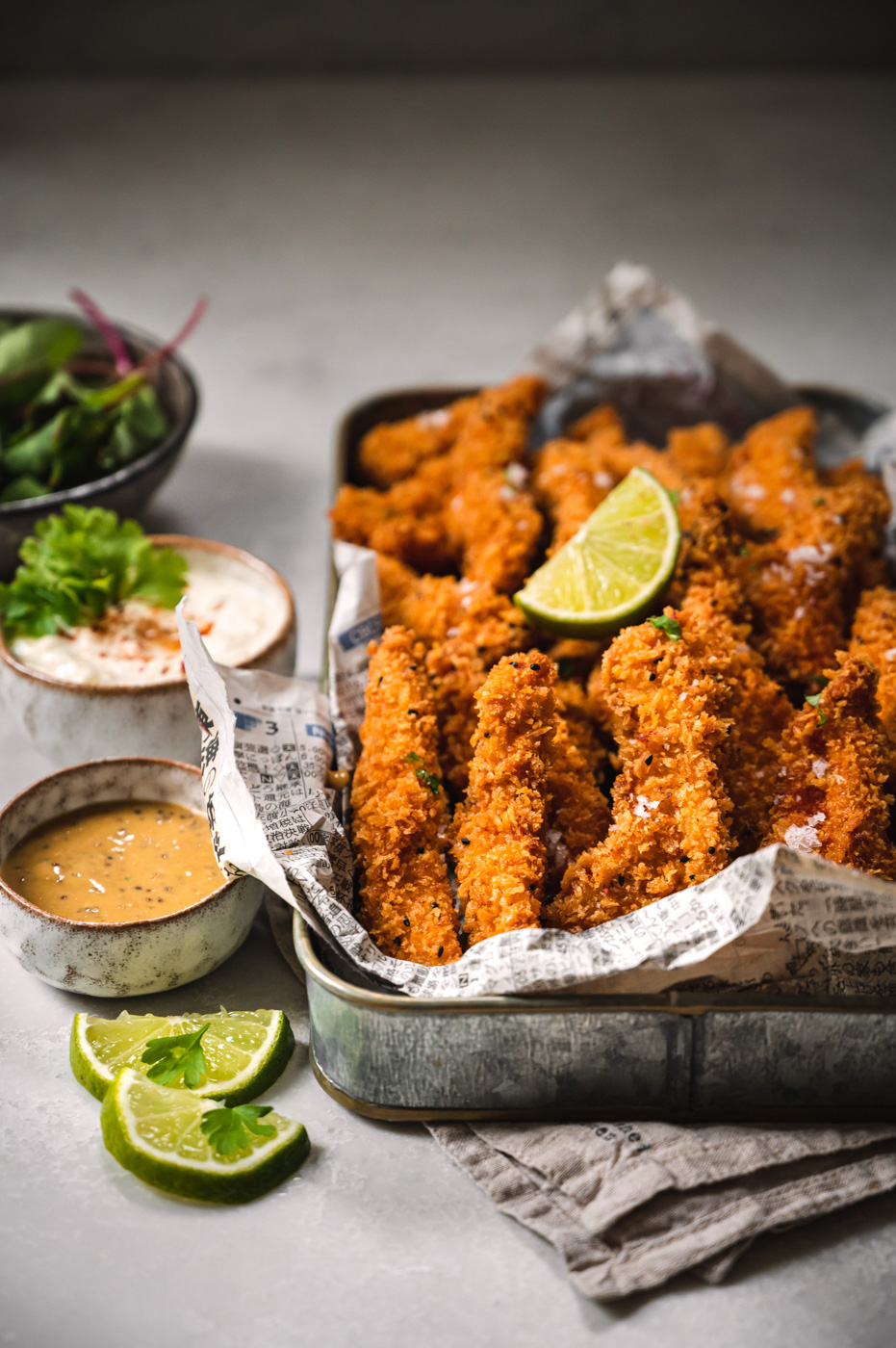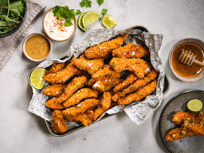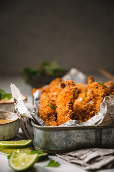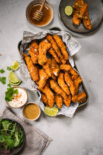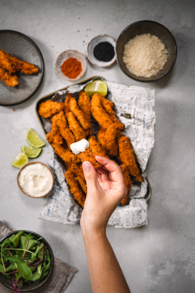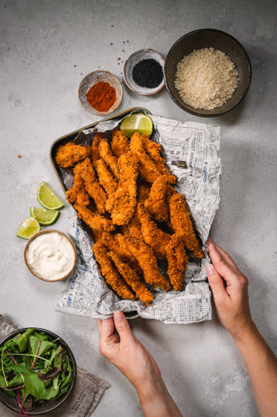 Když jsme v létě byli na kamarádově oslavě narozenin, podávaly se tam kuřecí stripsy. Bohužel jsme s Martinem v té době drželi zdravotní AIP dietu, kde je zakázán lepek. Od té doby mě Martin prosil o tohle jídlo. Byl dost neodbytný, a tak jsem je nakonec připravila rovnou i na blog. 🙂