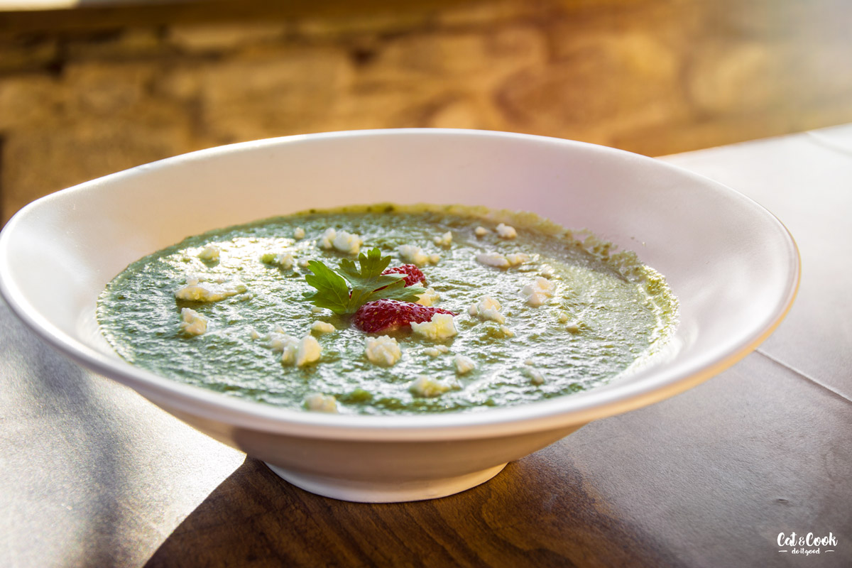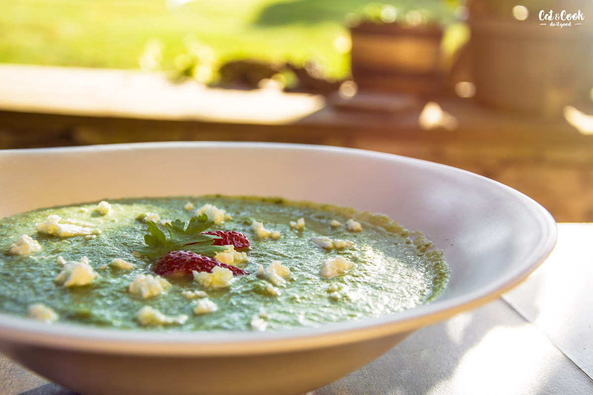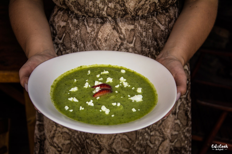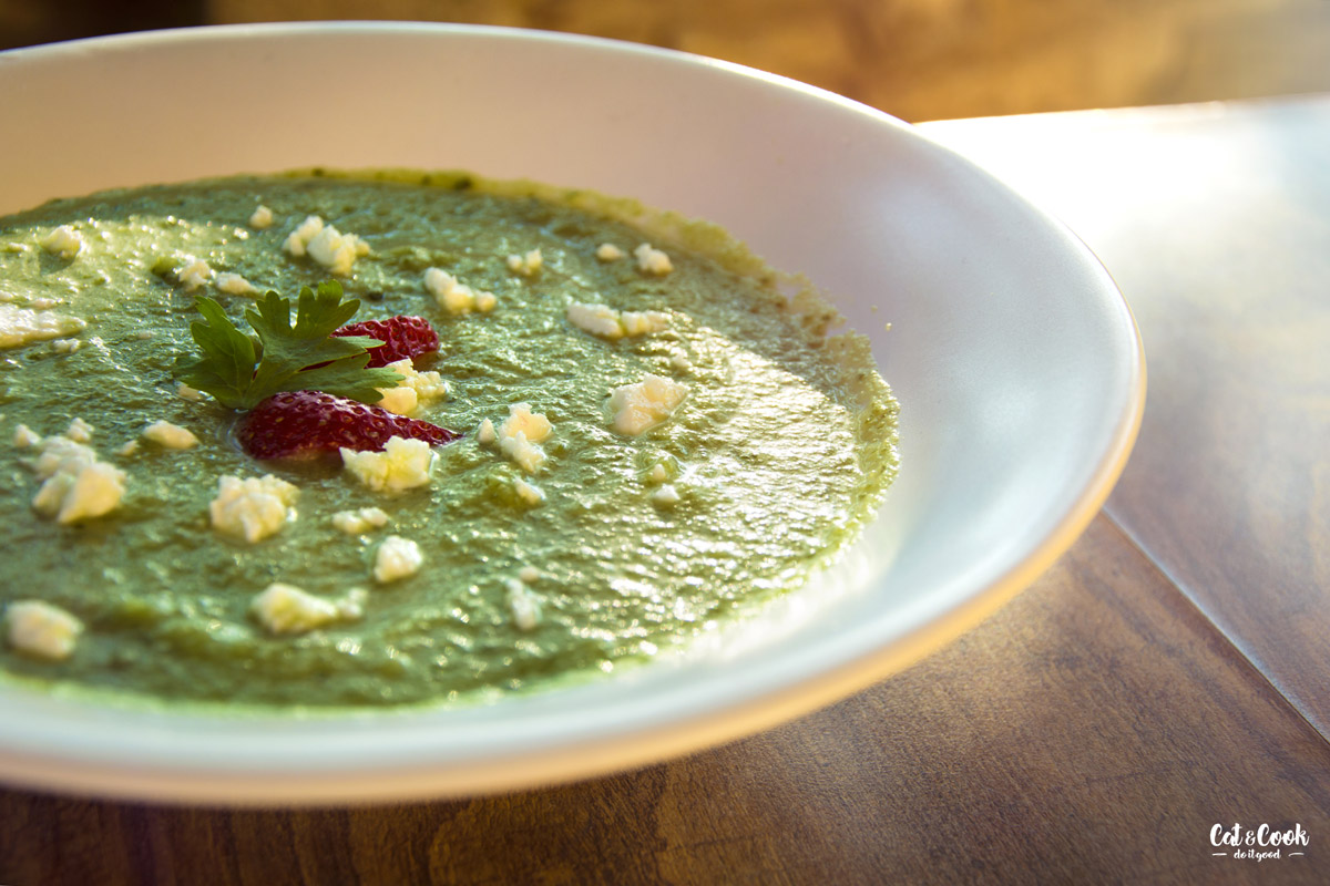 Polévku servíruj vychlazenou s nadrobenou fetou a koriandrem navrchu. My si na polévku dáváme jahody, přesně tak, jak jsme to vymysleli na Creative Mornings s tématem „weird“. 🙂 Aneb divný to sice je, ale chutná to skvěle!
