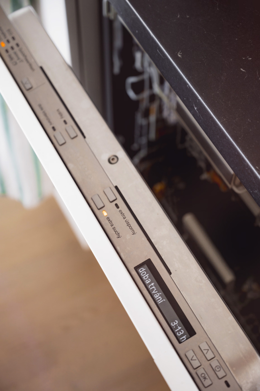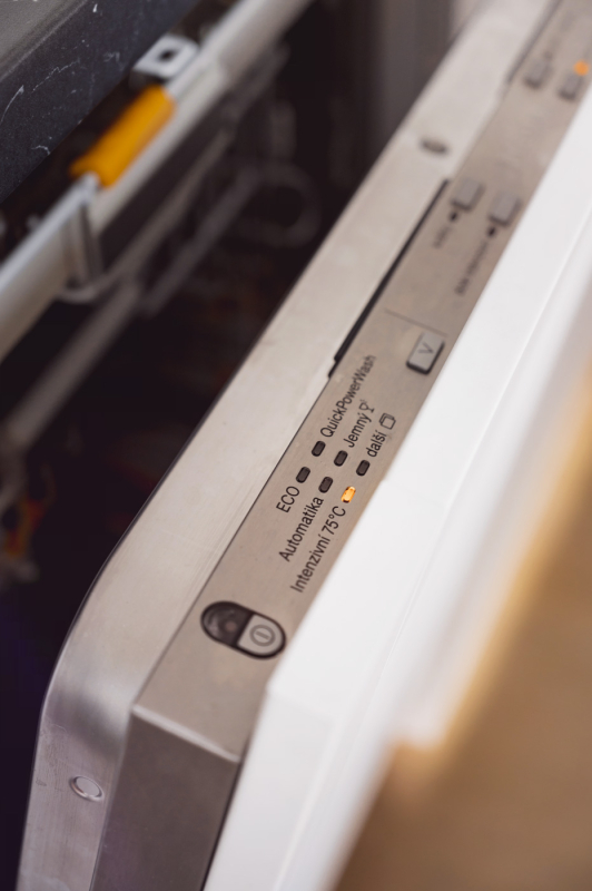 V neposlední řadě musím ocenit koše na nádobí, které si můžu různě přizpůsobovat, podle druhu nádobí, které tam ukládám. Highlitem je její extra úspornost, řadí se do A+++ energetické třídy a aplikace, kterou mám staženou v telefonu. Ta mi ukazuje, kdy bude myčka domytá, co zrovna při mytí dělá a jaký je stav leštidla a soli 🙂