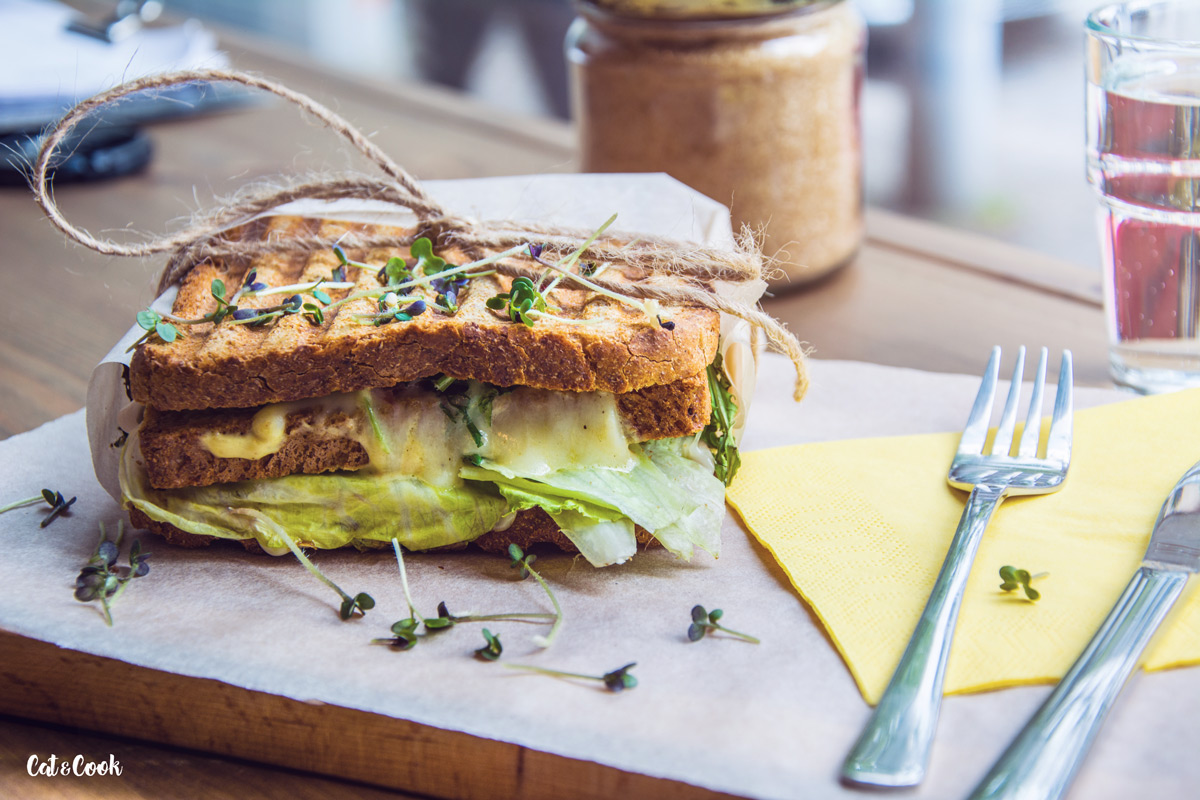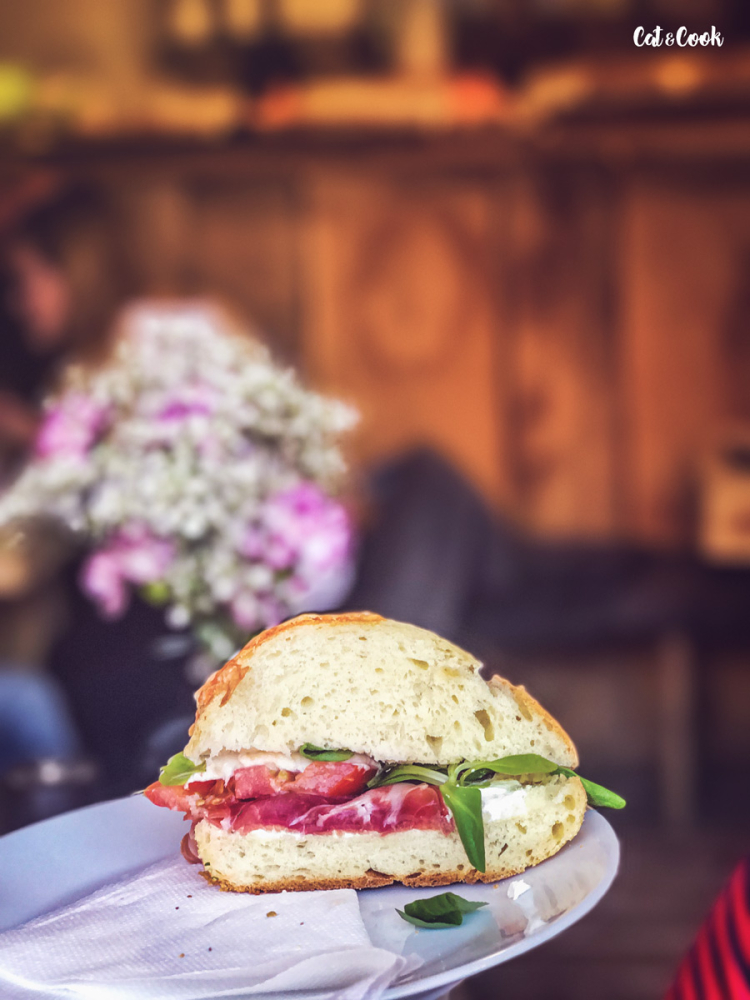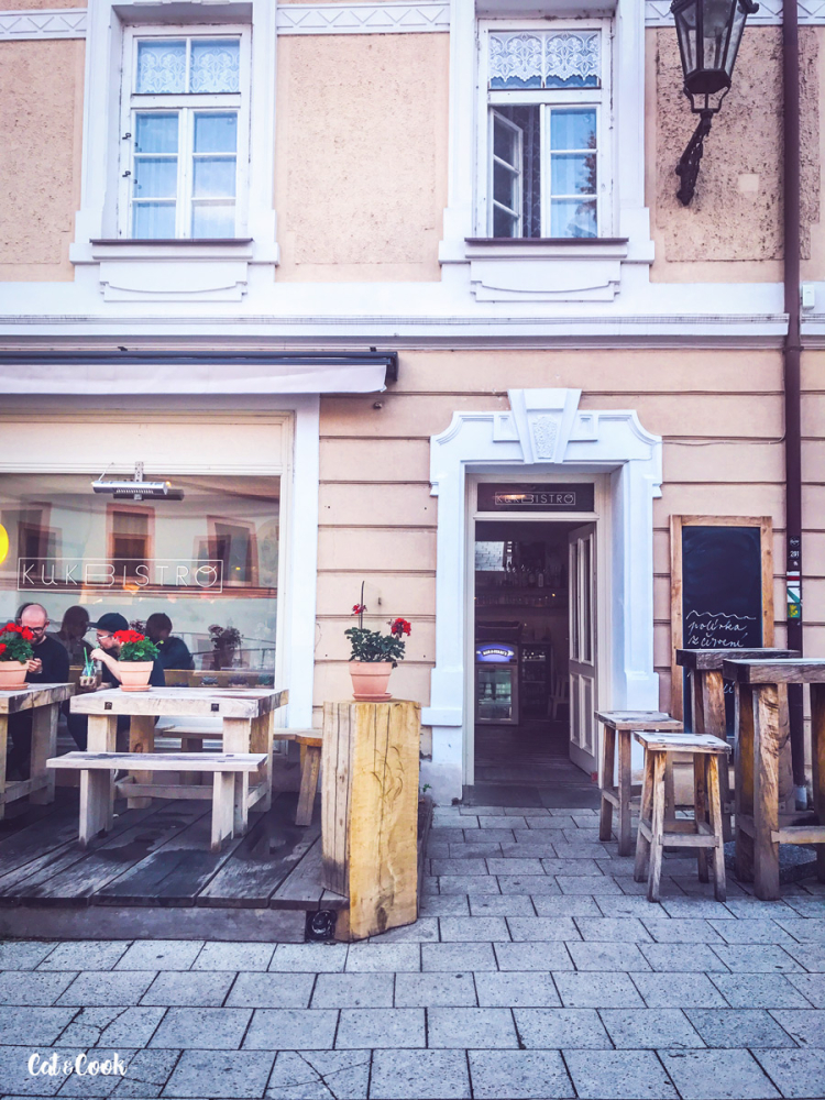 Poslední den jsme zavítali do Mikulova a chtěli jsme jít do Café Bistro Koloniál Sojka, ale bohužel měli úplně narváno. Nakonec jsme díky tomu našli nádherné malé bistro s pekárnou jménem KUK bistro. Tam se na židli povalovala místní kočička – takže si mě umíte představit! Byla jsem ve svým živlu. Dali jsme si domácí pečivo obložené samými dobrotami v podobě sušené šunky, rajčat, krémového sýra… Pečivo bylo teda opravdu luxusní, stejně tak jako klobáska, kterou jsem si koupila ke sváče na penzion 😀