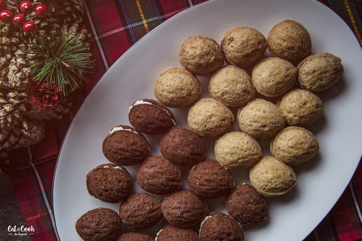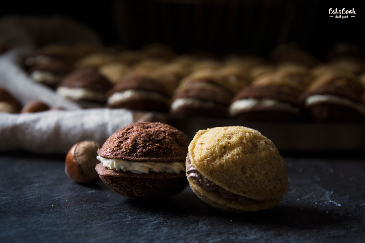 Troubu si předehřejte na 160 stupňů. Těsto napěchujte do formiček na ořechy. Nezapomeňte nechat prohlubeň na krém. Ořechy pečte v troubě asi 8 minut. Hotové ořechy ještě zatepla vyklepněte z formiček, nechte zchladnout a plňte krémem. Jsou ihned měkké, tudíž je nemusíte nechávat odležet.