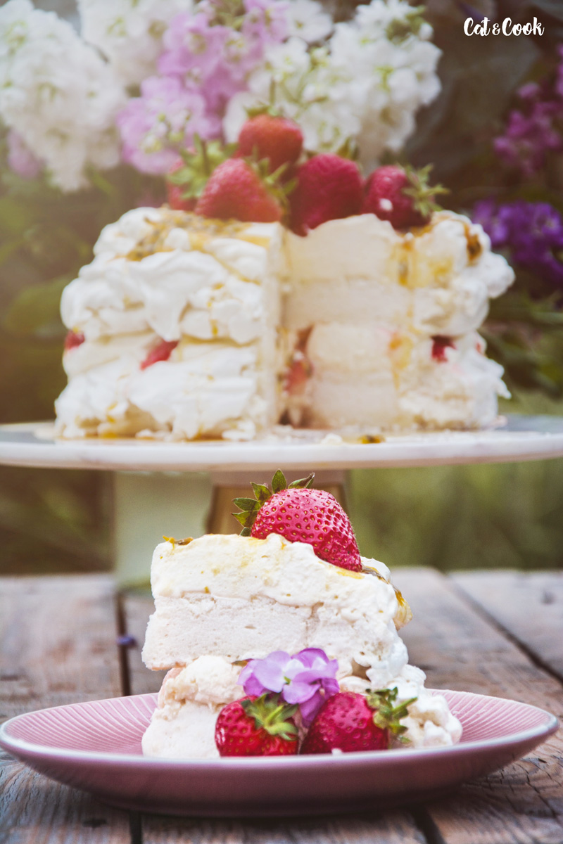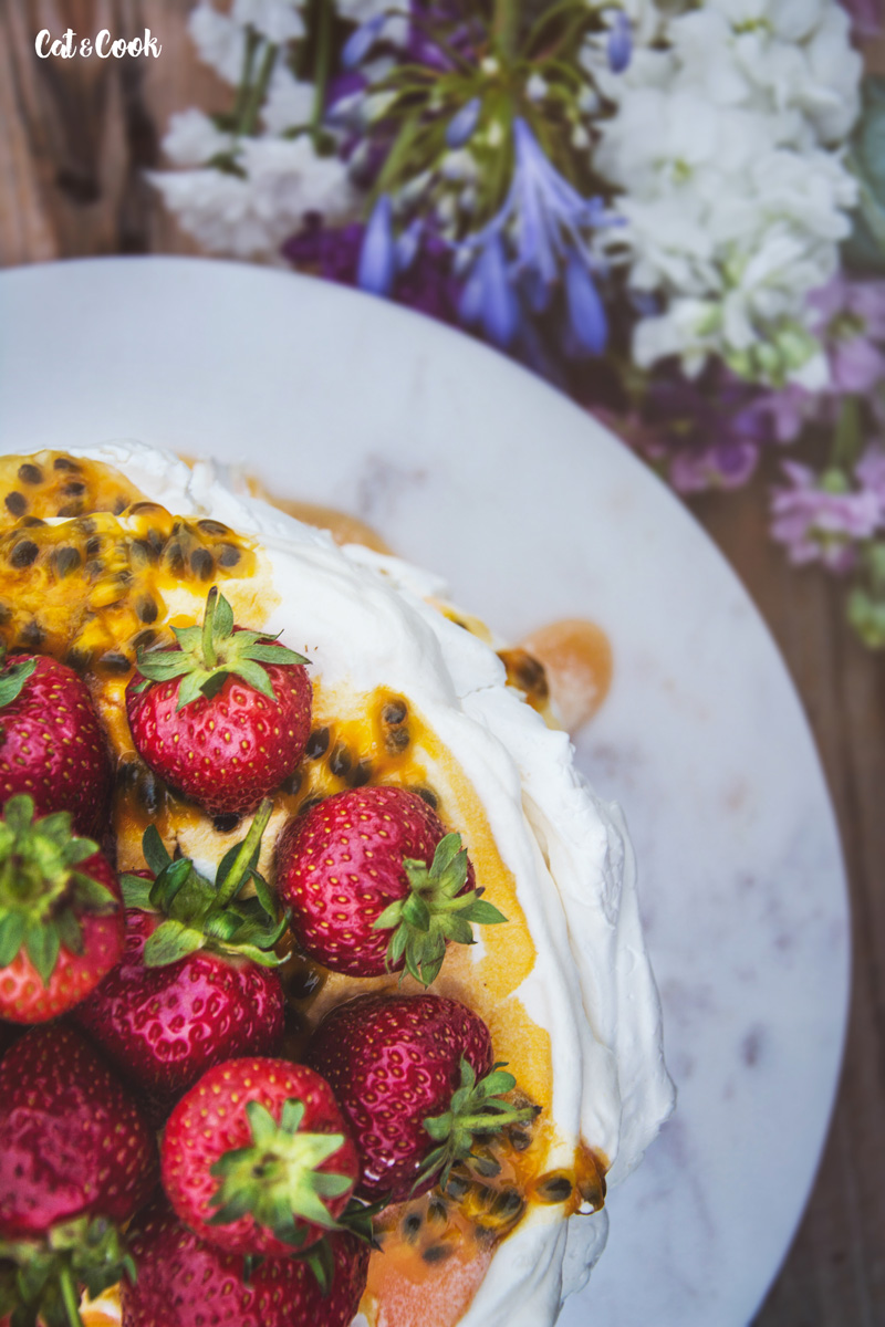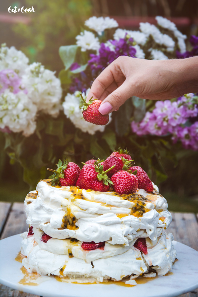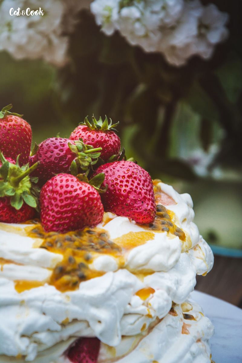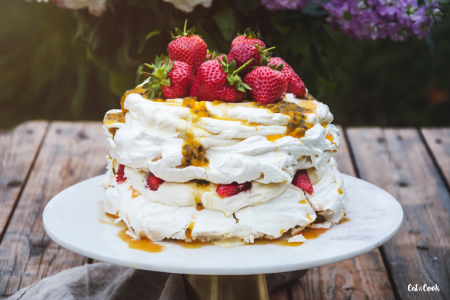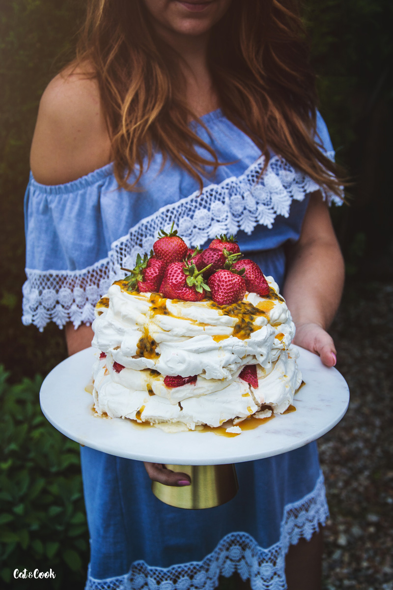 Pavlova – ošklivý nebo krásný? Za mě neuvěřitelně krásný a potvrzující pravidlo, že nedokonalost je známkou ruční práce 🙂 Jak už je u mě zvykem, pídila jsem se po historii. Nechtělo se mi věřit, že by byl až tak „mladý“ a pocházel z roku 1926. Nakonec jsem se dostala k jeho opravdovým kořenům, které sahají do Německa! Němečtí imigranti ho sebou vzali do Ameriky a odtamtud údajně jako inspirativní recept putoval do Austálie a Nového Zélandu na zadních stranách boxů s kukuřičným škrobem. Řekněme, že kořeny tohoto bílkového dortu sahají až do 18.století! Nicméně, nutno podotknout, že za slávu Pavlovy opravdu vděčíme Novému Zélandu i Autrálii, protože z tého bílé nádhery udělali jeden z nejslavnějších dortů světa 🙂