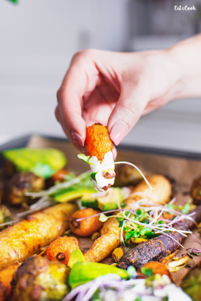 Občas mám dny, kdy mám chuť na bezmasý jídlo – zvláštní je, že čím dál víc, přitom dřív jsem bez masa nemohla být ani den. Každopádně tenhle pokrm je jako stvořený na takový dny 🙂 Pokud seženete barevný mrkvičky, zážitek bude ještě větší, ale i s klasickýma mrkvičkama je to výborný 🙂