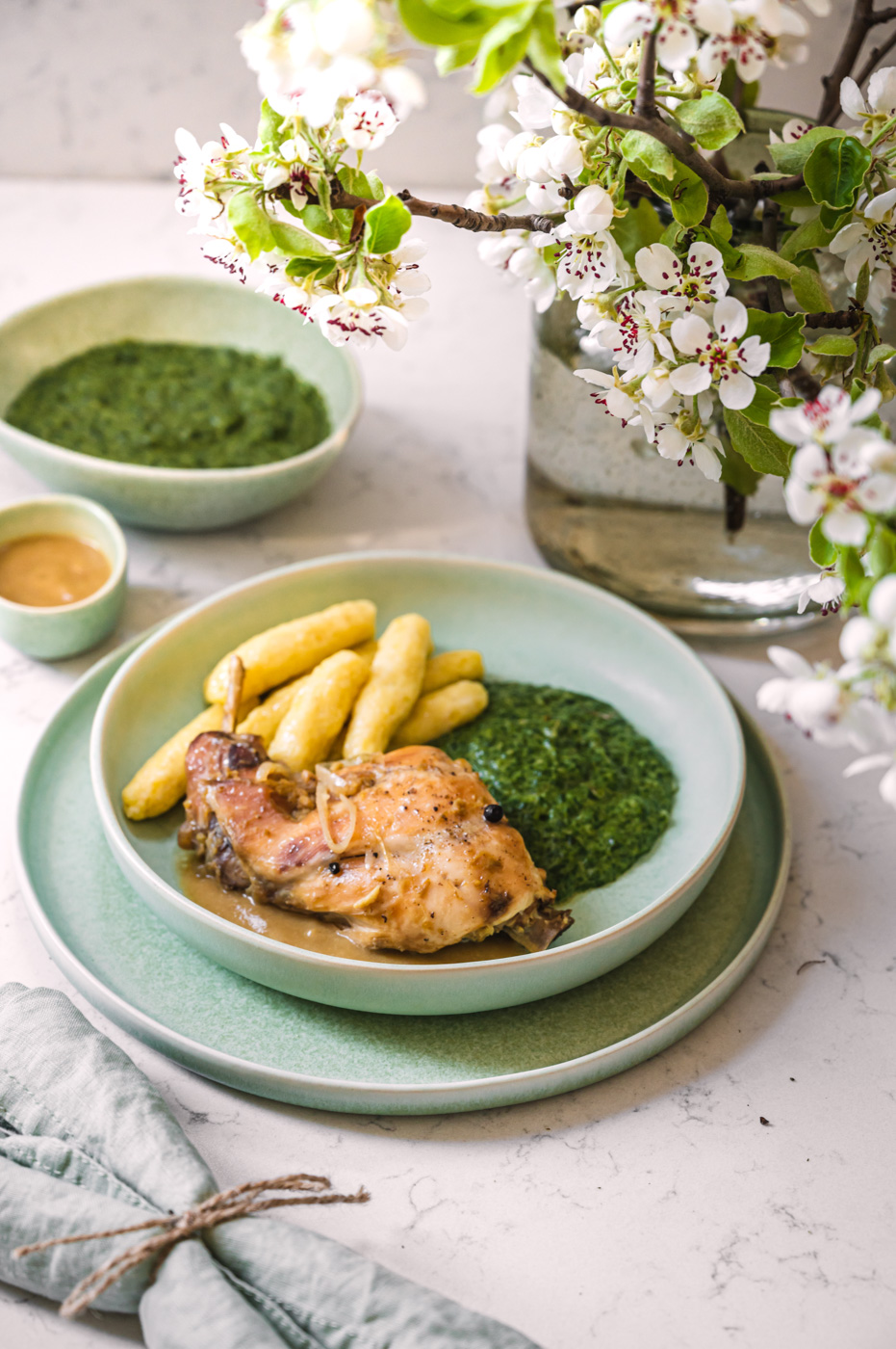 Na talíř naservírujte šišky, špenát a nakonec masíčko. Zalijte šťávou a hodujte. 🙂