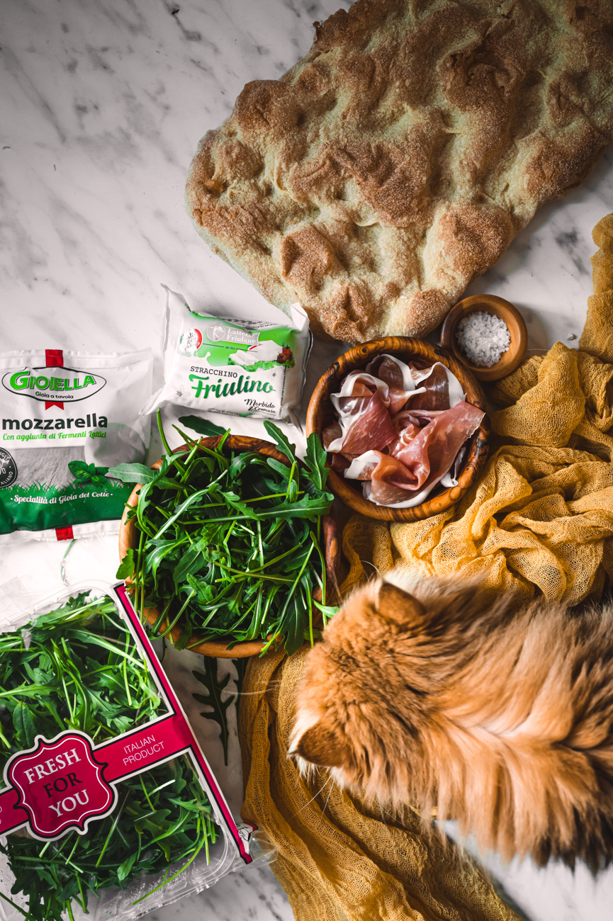 Pinsa je starší ségra pizzy, pokud ale nebydlíte v dosahu Cortelazzi či jiného místa, kdy byste ji sehnali, nezoufejte. Recept můžete brát jako inspiraci na slaný koláč z máslového listového těsta, které se dnes dá sehnat téměř v každém supermarketu. Hlavně koukejte na etiketu, ať nekoupíte rádoby listové těsto plné palmového tuku a dalších nežádoucích ingrediencí, které do těla určitě vpouštět nechcete. 🙂