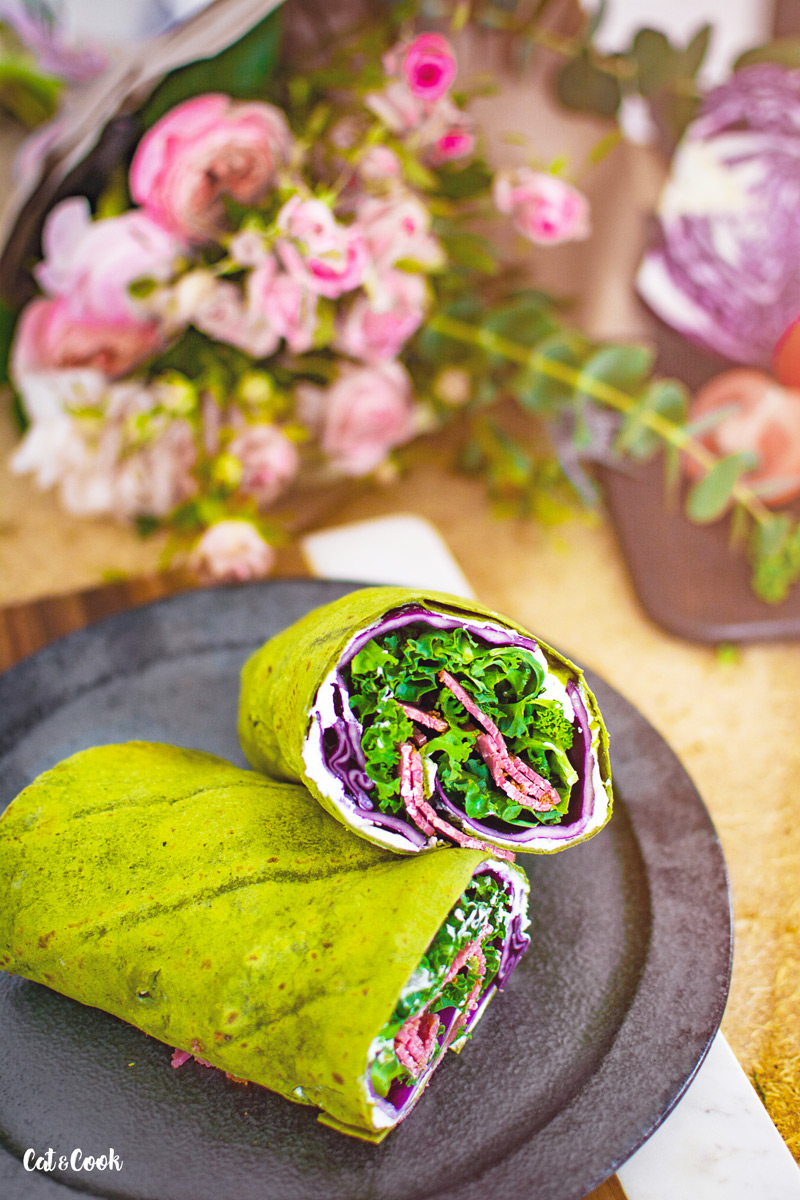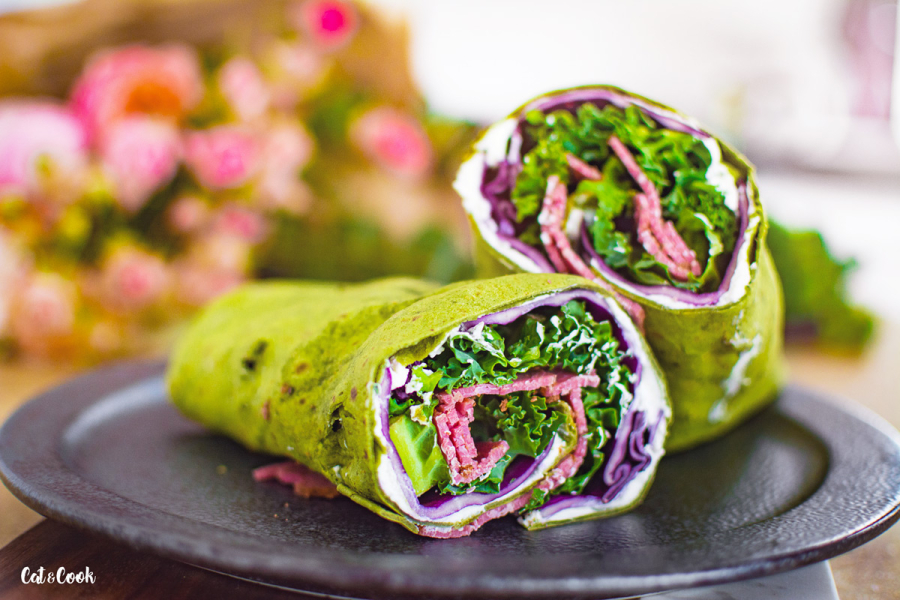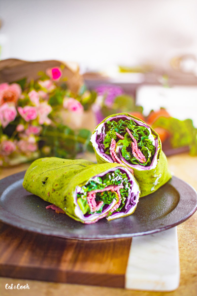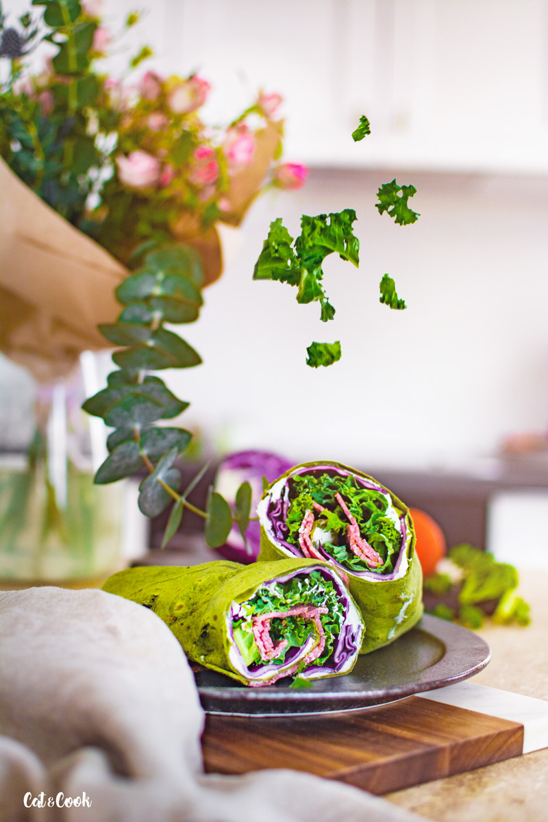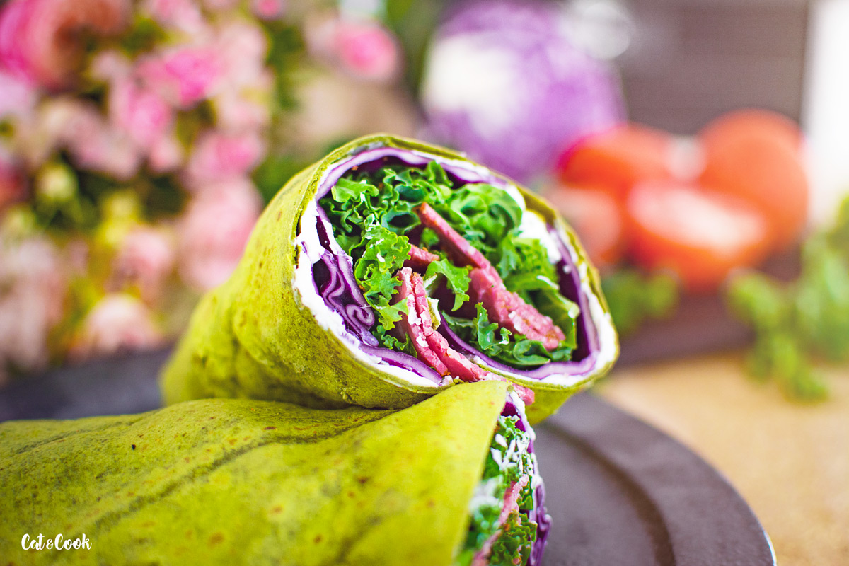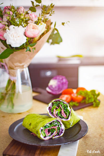 *Pokud nemáte špenátové tortily, použijte jakékoliv jiné a dovnitř přidejte špenát 🙂