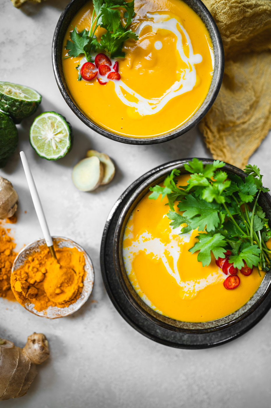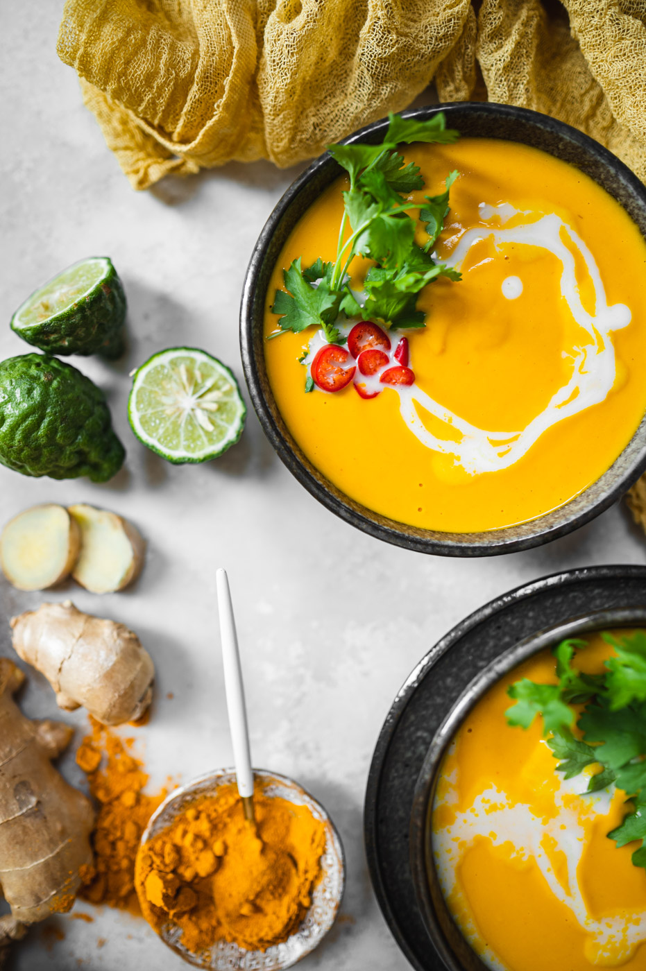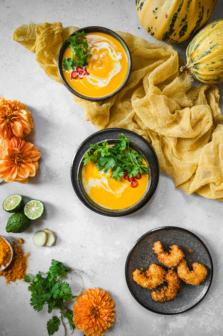 Musím říct, že tohle je asi moje nejoblíbenější příprava dýňového krému! V první řadě je skvělé upéct dýni v troubě, protože tam má možnost krásně zkaramelizovat, což zajistí skvělou chuť. Zároveň použití kari pasty, zázvoru a kurkumy zajistí exotickou, ostřejší chuť, která dýni rozhodně svědčí! 🙂 Kokosové mléko pálivost lehce zmírní a limetka dodá svěžest. Zkrátka dokonalá kombinace.