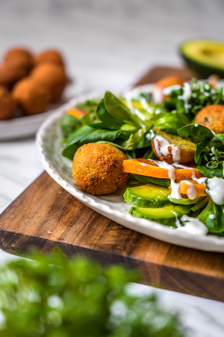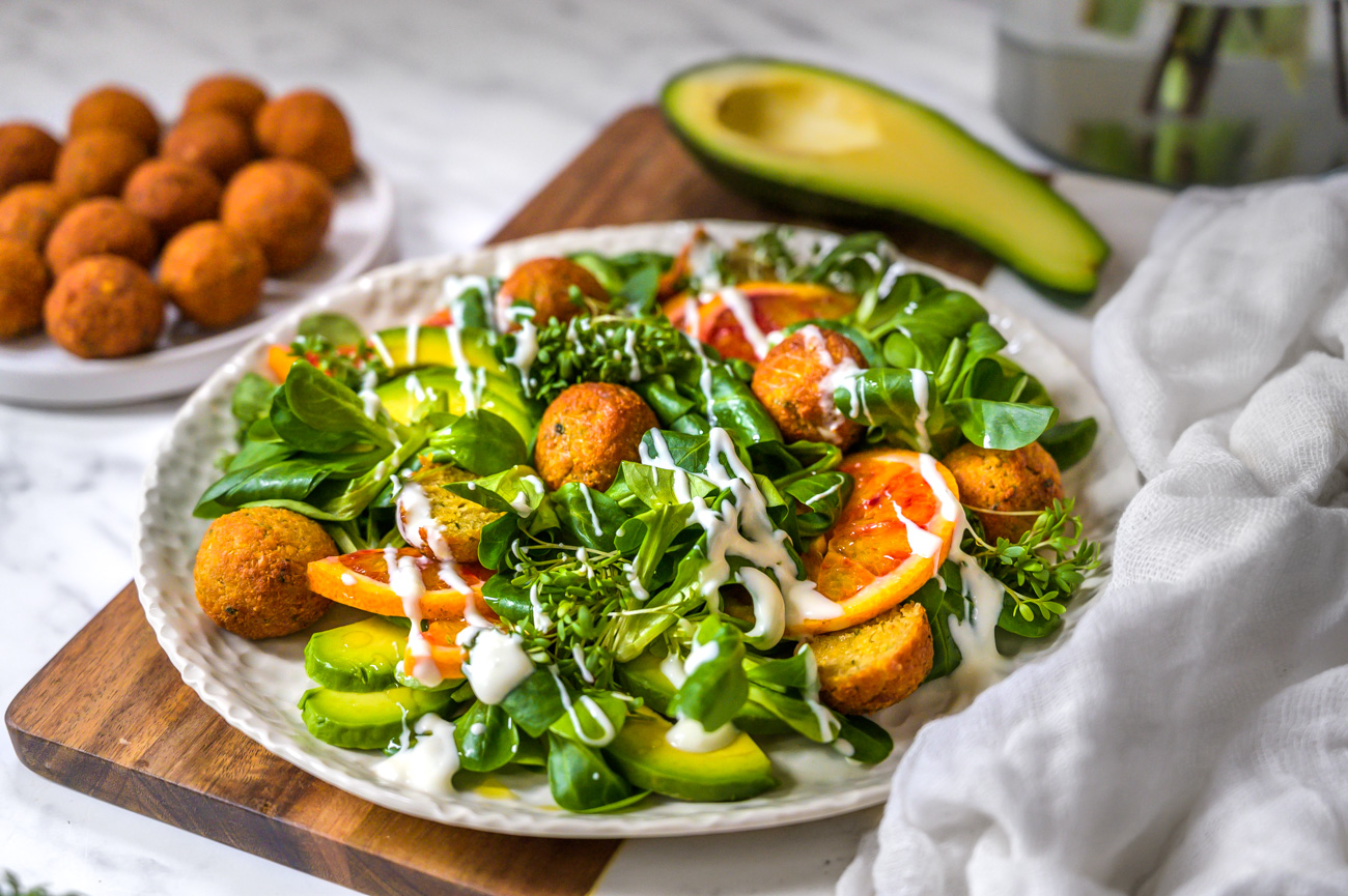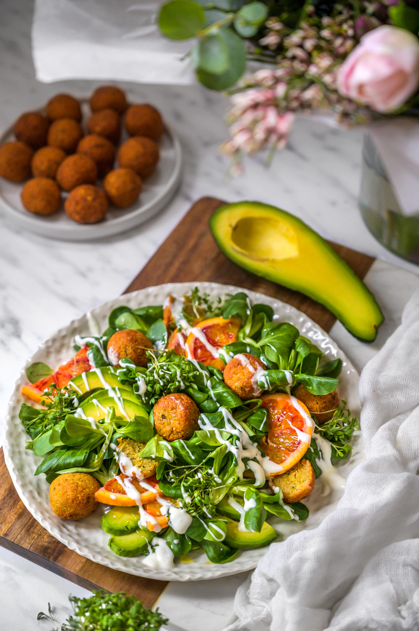Salát s falafelem a krvavým pomerančem