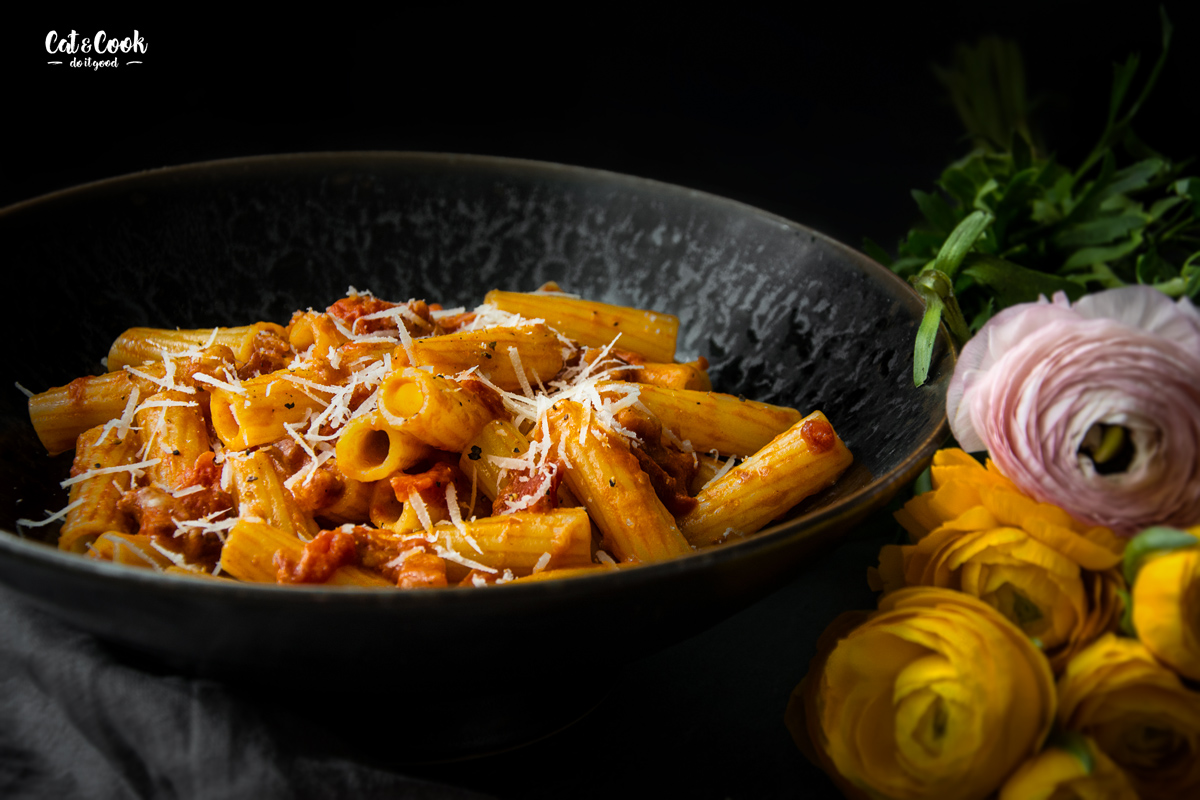 - 400 g těstovin rigatoni