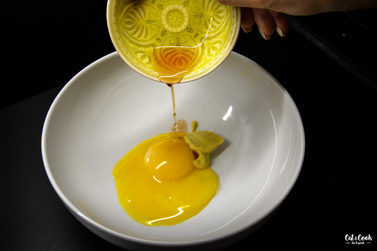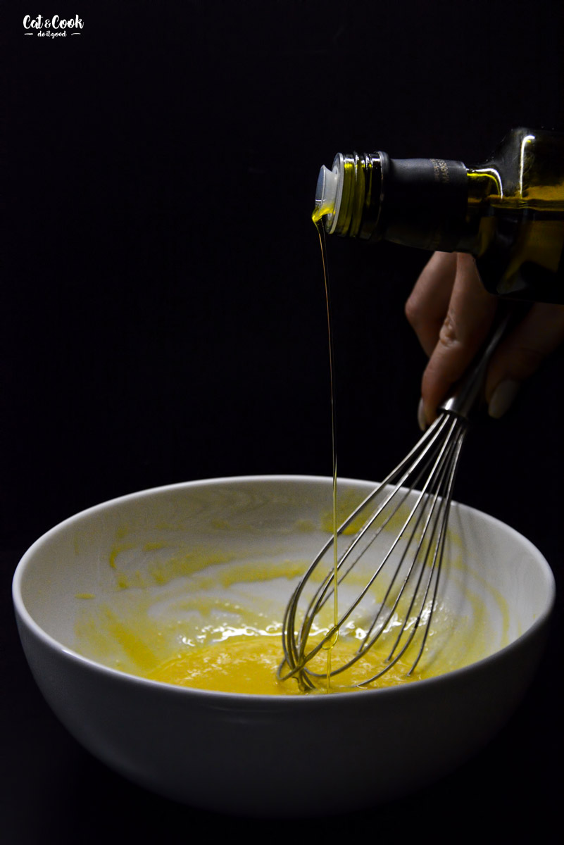 Na dresink smíchej žloutky s hořčicí a vinným octem a prošlehej metličkou. Poté tenkým pramínkem přilévej extra panenský olivový olej dokud směs nebude krásně světlá a hustá. Přidej najemno nasekané ančovičky a česnek (já si vždy smíchám trochu soli s česnekem, na prkénku ho utřu nožem, poté přidám ančovičky a utřu skoro na pastu). Promíchej a přidej parmazán, citrónovou šťávu a trošku vody. Vyšlehej do krémové konzistence.