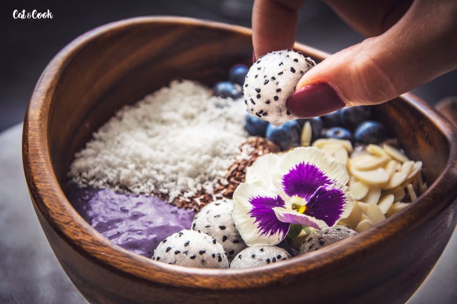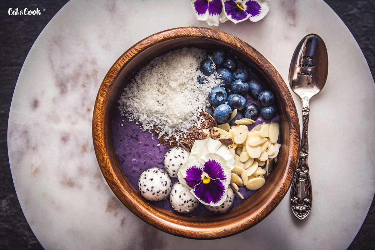 Banány rozmixujte s borůvkami, açaí práškem a jogurtem. Pokud byste si přáli tekutou verzi, přidejte kokosové mléko, dohromady to chutná naprosto božsky! A jestli stejně jako já milujete zmrzku i v zimě, použijte mražené banány a klidně i borůvky 🙂