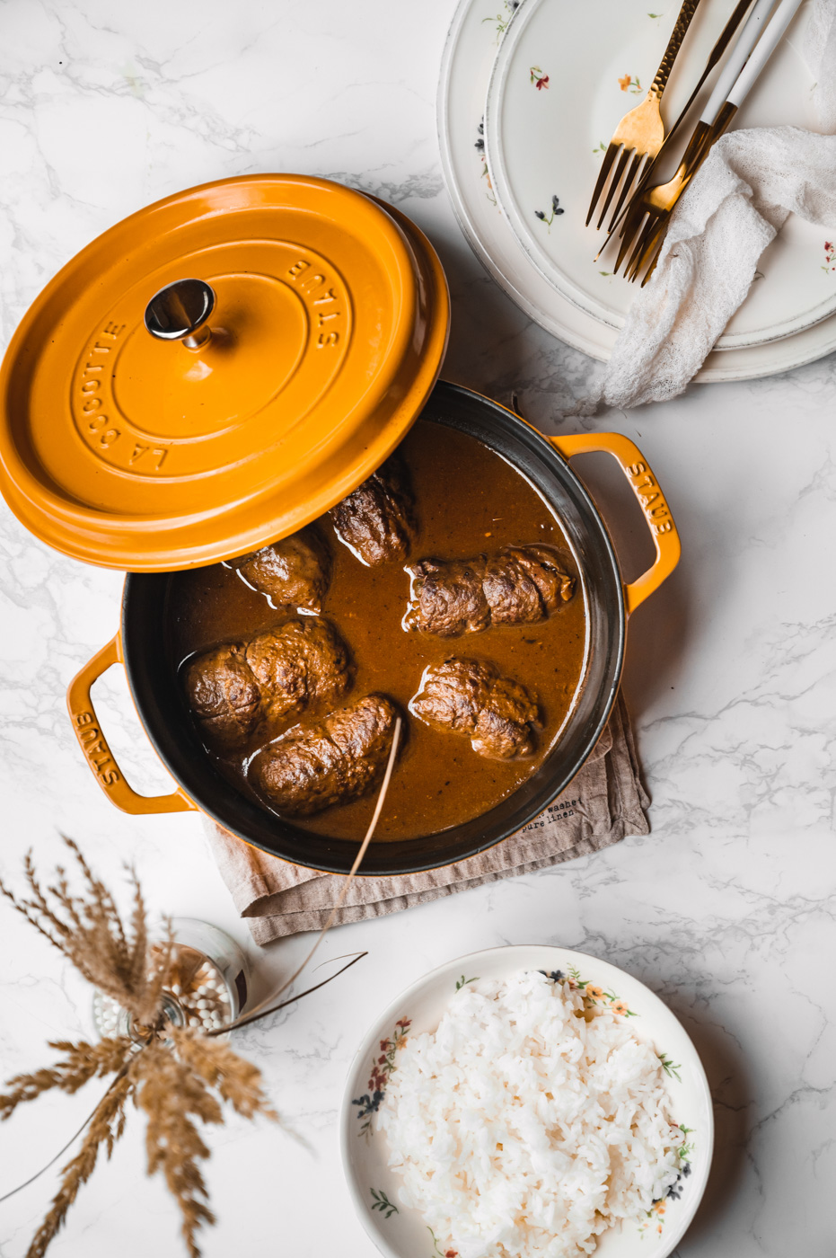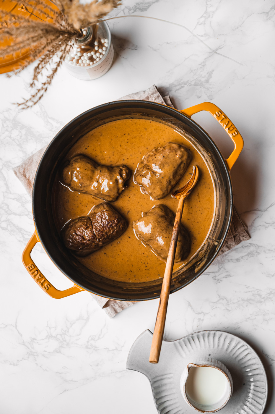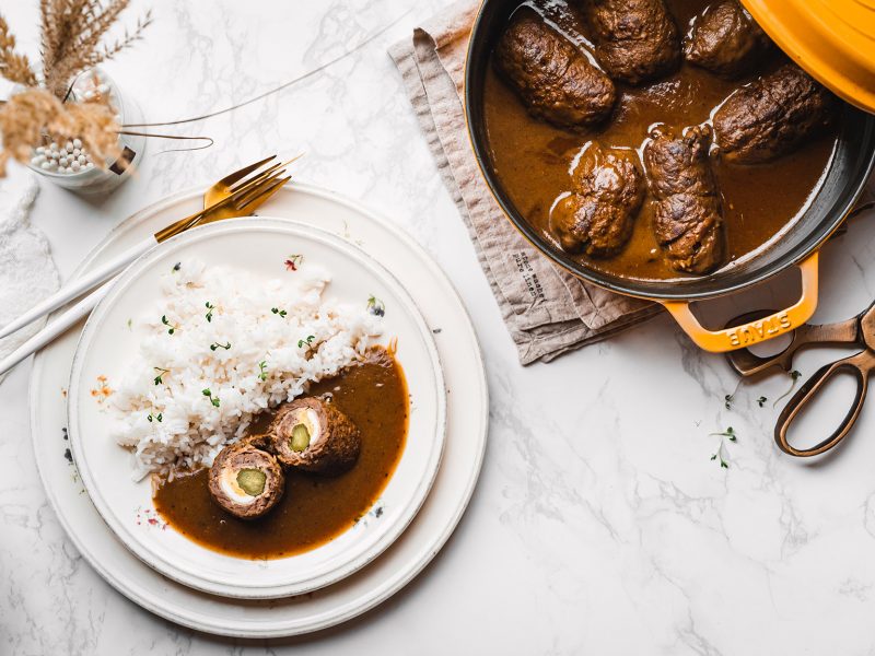 Se španělským ptáčkem je to jako s francouzskými bramborami – recept v té dané zemi nikdo nezná 😀 Já osobně ptáčky miluju, je to moje hodně oblíbené jídlo ať už ve verzi “rozlítaní” nebo zabalení. 🙂 Je to přesně ta omáčka, která zabaví celou škálu vašich chuťových buněk! Je příjemně sladká po karamelizované cibuli, lehce kyselá po okurkách, ostřejší po hořčici a ve spojení s chutí hovězího je zkrátka dokonalá. Teď už se jen rozhodnout jestli smetana nebo “nesmetana” 😀