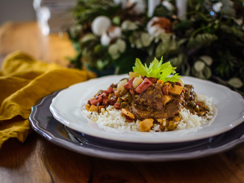 Poté hrnec vyndejte z trouby zpět na plotnu, odklopte a nechte omáčku zredukovat na vyšším ohni. Je možné, že bude dostatečně hustá a nebude to potřeba, to záleží na množství použitého vývaru.