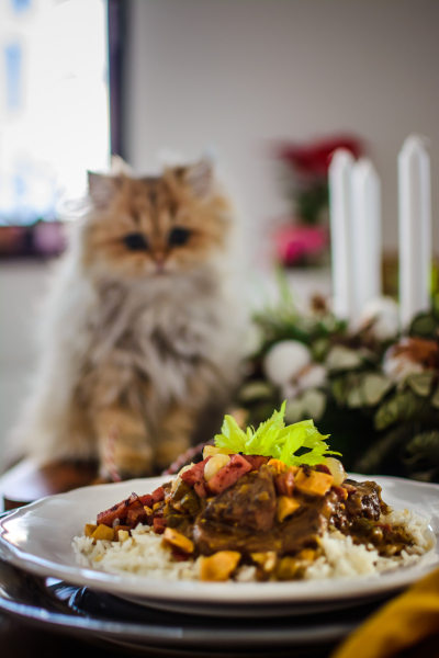 Nakonec omáčku podle potřeby dochuťte solí a pepřem (většinou ale není potřeba). Nyní do omáčky můžete přidat smetanu – to nechávám na vás. Já se nikdy nemůžu rozhodnout, protože mám ráda obě verze, tak to udělám tak, že omáčku rozdělím na dvě poloviny a do jedné dám smetanu 🙂 Podávejte s rýží nebo houskovým knedlíkem (na výborný knedlík je recept v kuchařce).