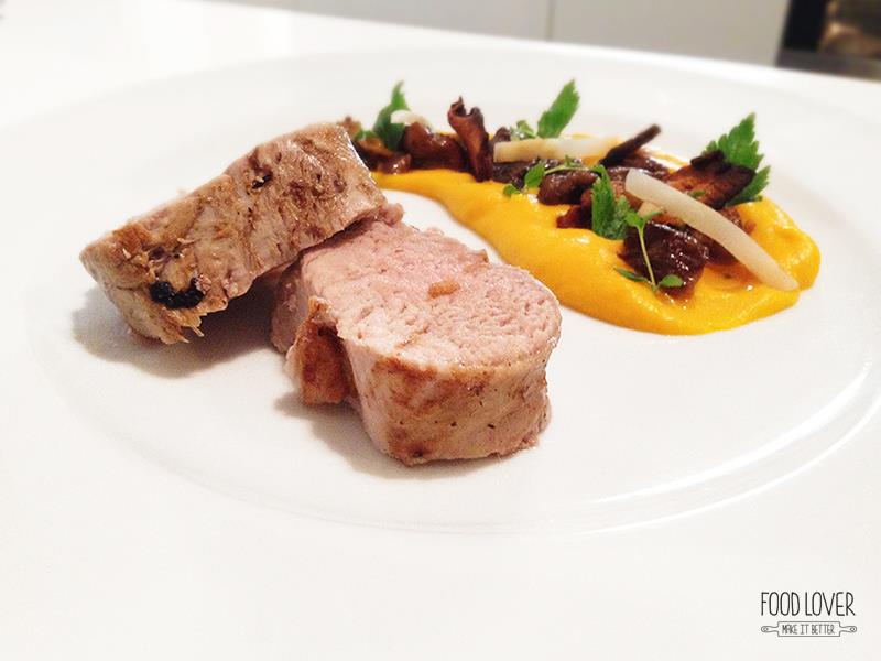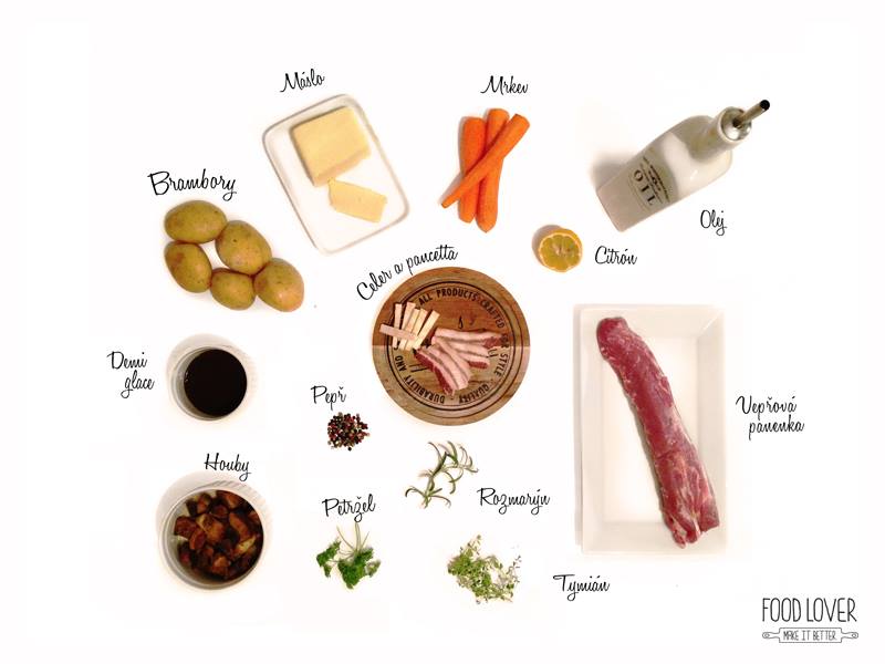 - Jedna menší očištěná vepřová panenka Olivový olej, sůl, pepř