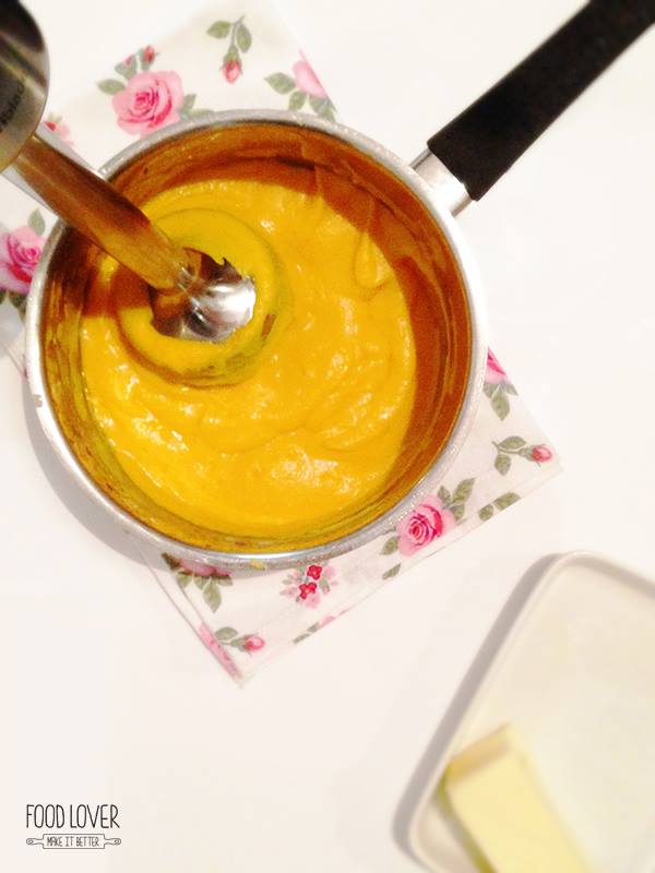 Mrkev nakrájej na kolečka, bramboru na menší kousky, tyčovým mixérem začni šlehat a přilívej máslo. Dochuť solí a uchovej v teple.