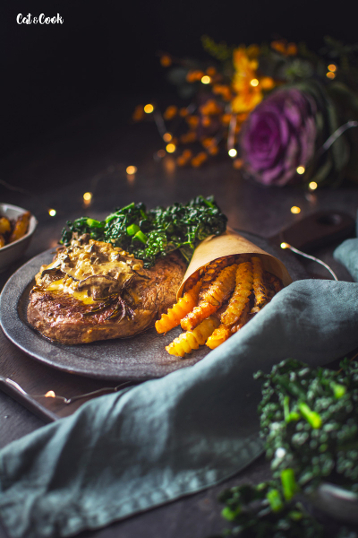 Co se týká hranolek, použila jsem ty z M&S, jsou božský! Vyrobit si je ale můžete i doma, stačí nakrájet zeleninu na stejně velké hranolky (o vlikosti standardních hranolek 🙂 ) Plech si vyložte pečícím papírem a rozmístěte na něj hranolky. Pečte v troubě asi 20 minut. Horké hranolky osolte a uchovejte na teplém místě.