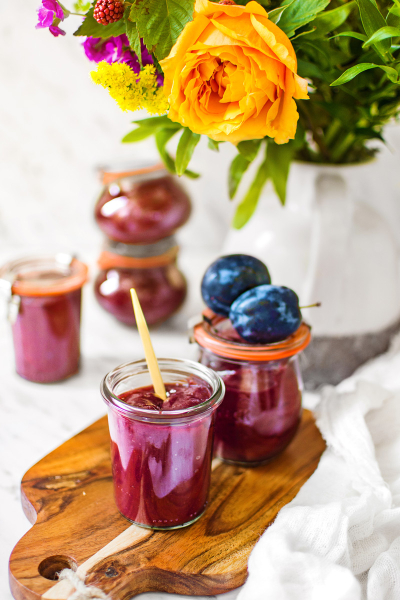 Nikdy se mi nepoštěstilo, že bych dostala víc švestek než na koláč, proto mě ani nenapadlo vyrábět si domácí povidla. Tento rok jsem ale od ségry Martina dostala 4 kg zralých švestek z jejího stromu, tak jsem se na to hned vrhla! Věděla jsem, že pravá povidla se dělají bez cukru. Stačí použít správně zralé švestky a mít trpělivost. 🙂 Povidla si pak můžete ozvláštnit rumem, vanilkou či skořicí, je to na vás. Já mám ráda tzv. basic chutě, proto upřednostňuju udělat si je bez další příchuti, nicméně se skořicí jsou prý fakt dokonalá. Na to se chystám příští rok. 🙂