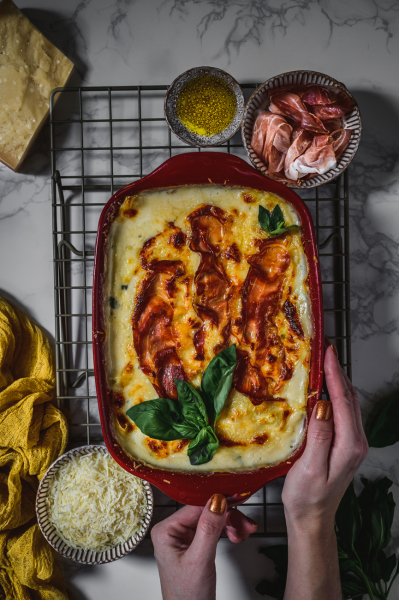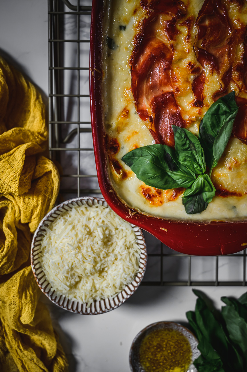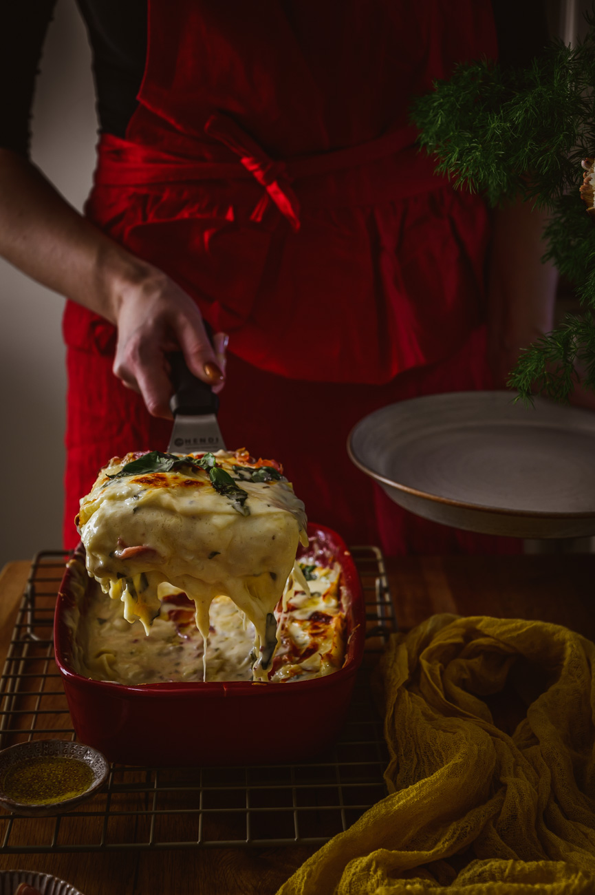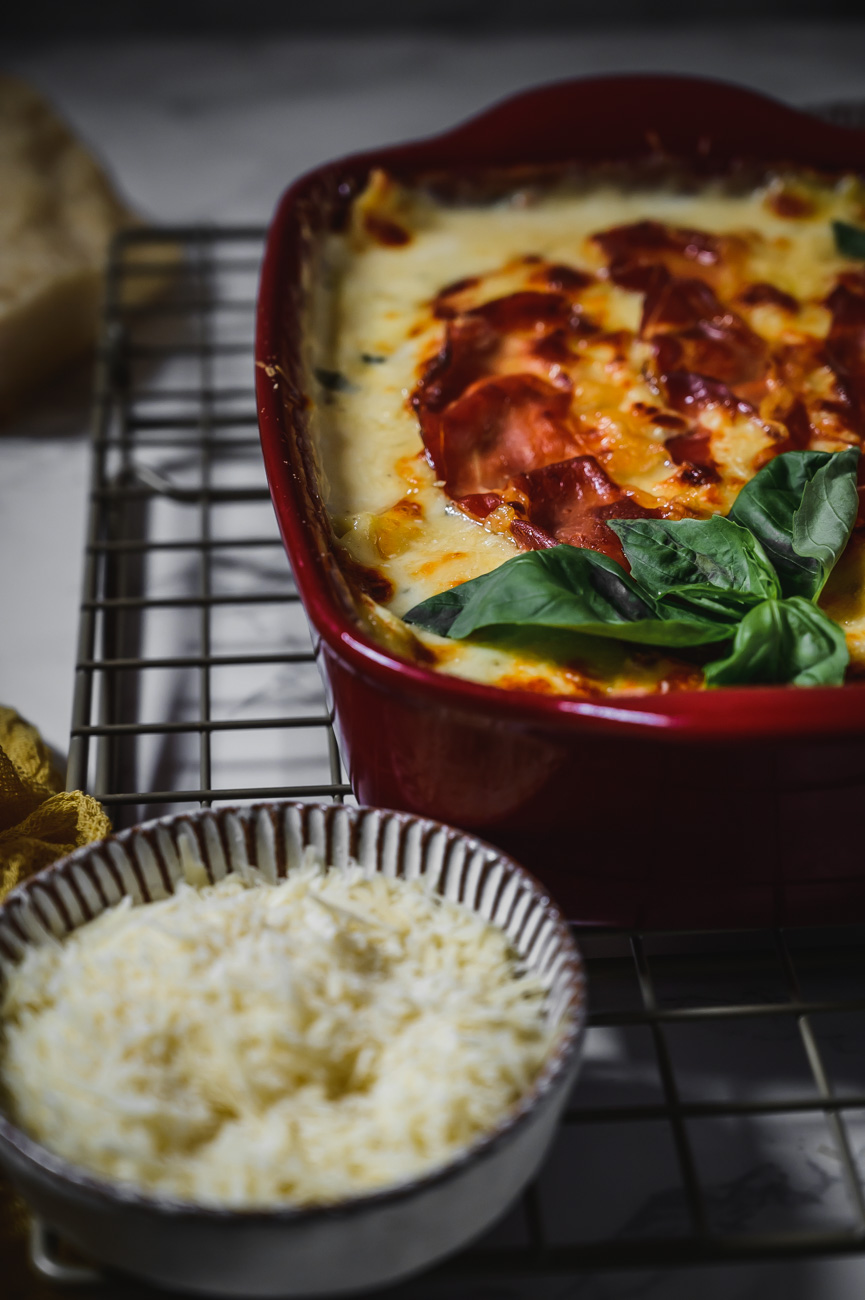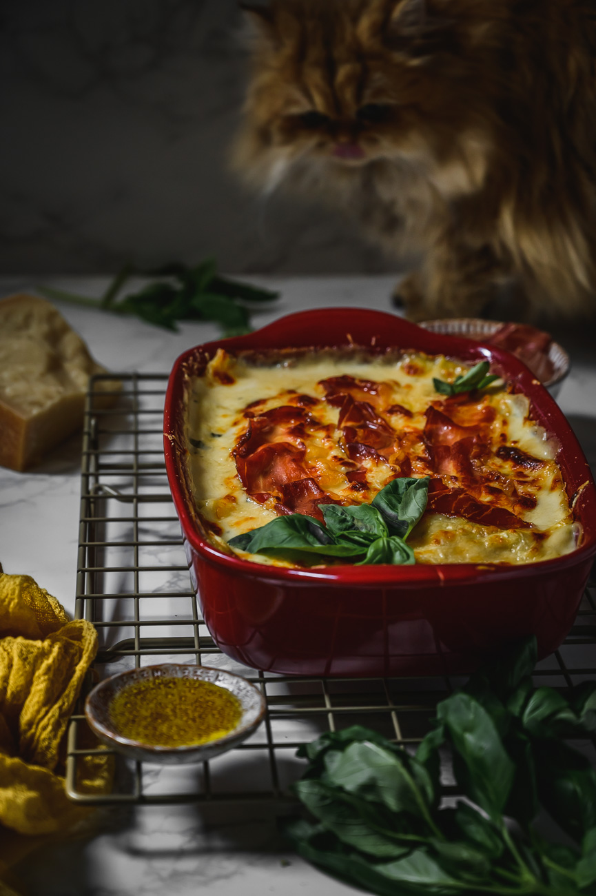 Já tedy rozhodně patřím do týmu lasagne! Málokdy si ale dám nějaké jiné než tradiční alla bolognese. Jsem ráda, že jsem měla příležitost pro vás vytvořit ve spolupráci s Cortelazzi příjemnou změnu v podobě těchto sýrem nabitých lasagní. Mají výraznou chuť, kde se snoubí vyzrálost parmazánu, lahodnost mozzarelly, síla gorgonzoly a jemnost bešamelu. Sušená tyrolská slanina už je jen pomyslnou třešničkou na dortu. 🙂