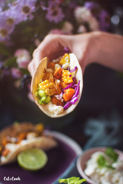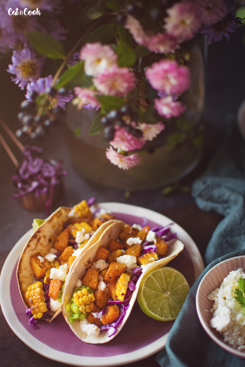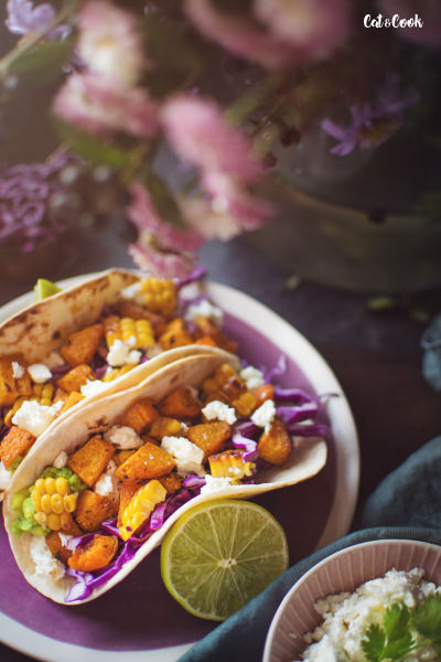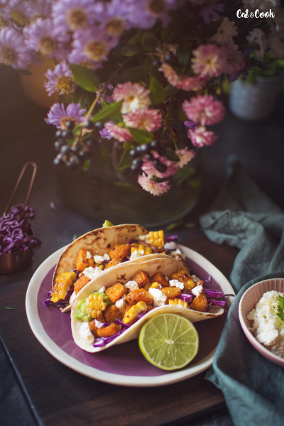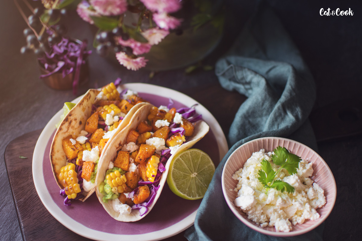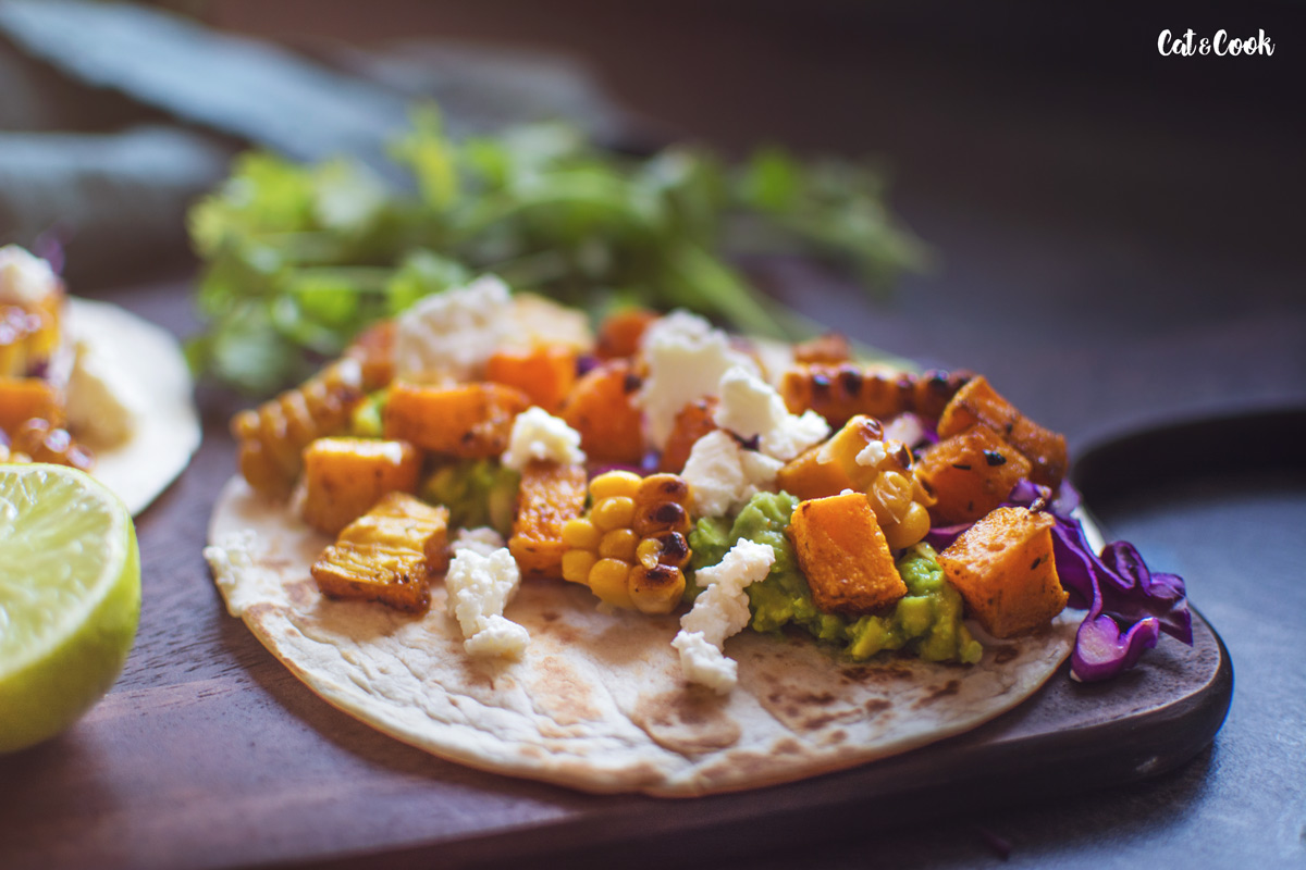 Dýni oloupejte (v případě hokkaidó nemusíte), odstraňte semínka a nakrájejte na menší kostky. Ochuťte ji taco kořením a zakápněte olivovým olejem. Plech vyložte pečícím papírem a pečte asi 20 minut ve vyhřáté troubě na 200 stupňů.