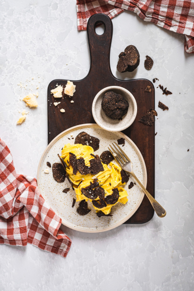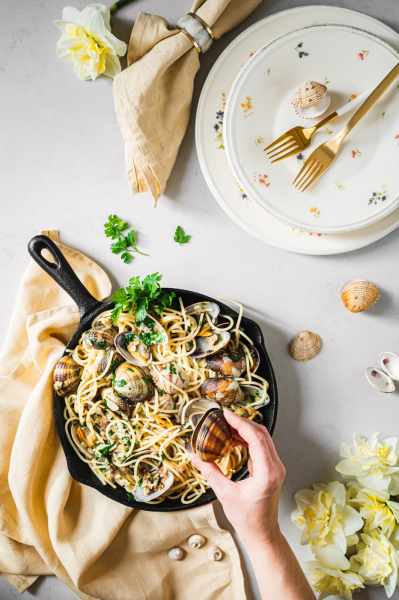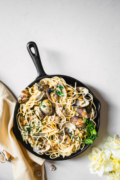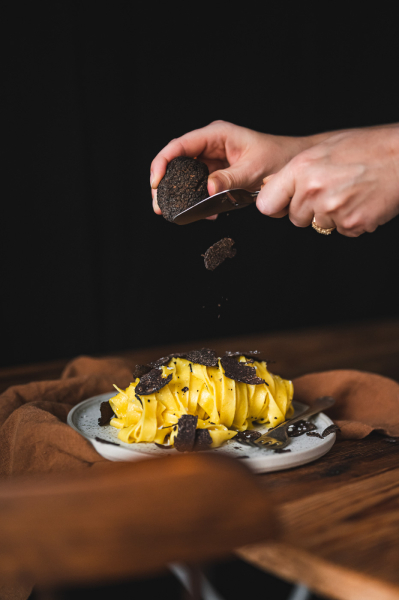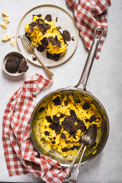 Pokud se rozhodnete udělat těstoviny sušené, kupte takové, na kterých je nános mouky – nejsou žluté, ale spíš do bíla a jejich povrch je spíš hrubší, je to záruka kvality. Těstoviny vařte ve velmi slané vodě, dokud nebudou ve středu ještě lehce syrové, a pokračujte stejně, jako když používáte čerstvé.
