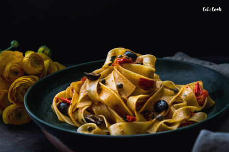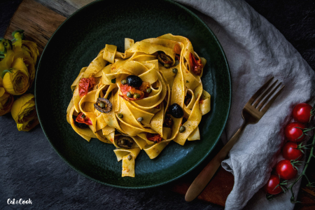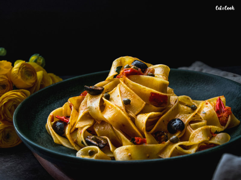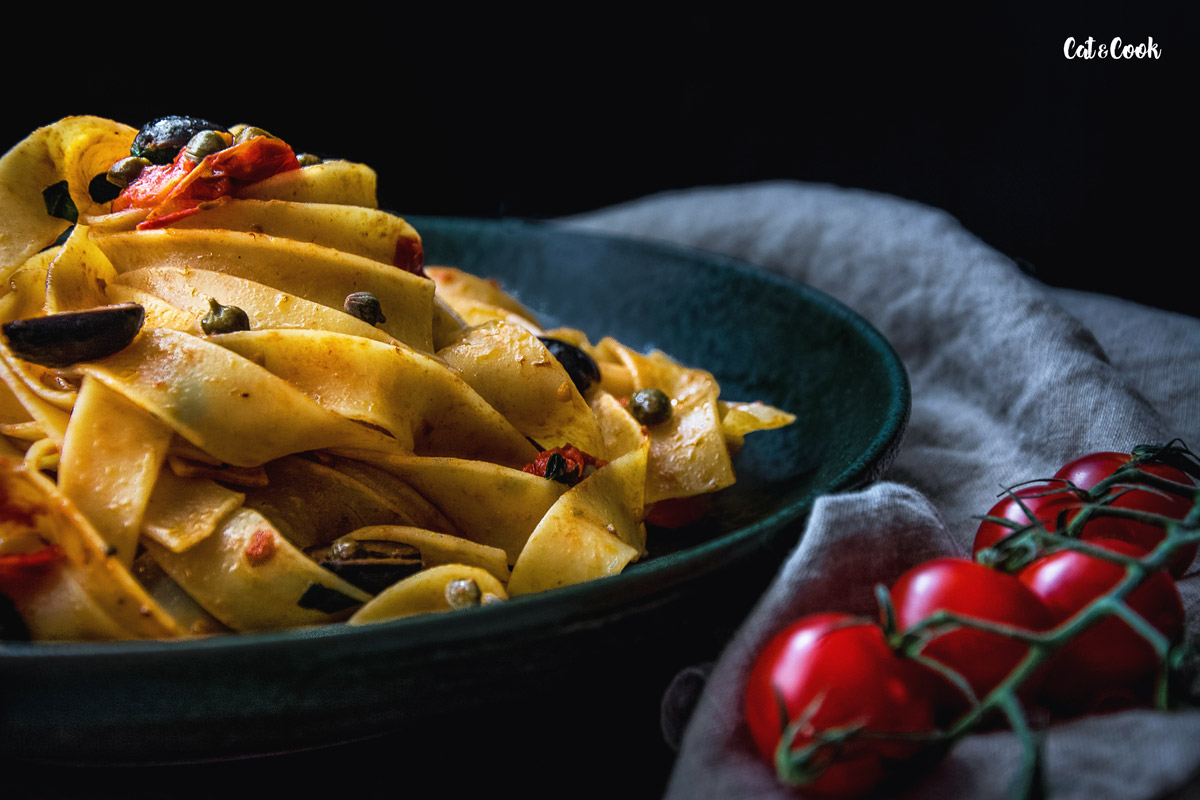 Jedna z nejtradičnějších a nejstarších italských omáček je právě puttanesca. Když jsem ji vařila poprvé, musím se přiznat, že jsem z ní něměla dobrý pocit – ančovičky, olivy, kapary, do toho česnek a navíc ten název alla puttanesca = „podle kurvy“ 😀 Nakonec jsem té kurvě ale podlehla jako všichni na světě a musím říct, že jsou kurva dobrý! A příště už budu zase slušná, slibuju! 😀