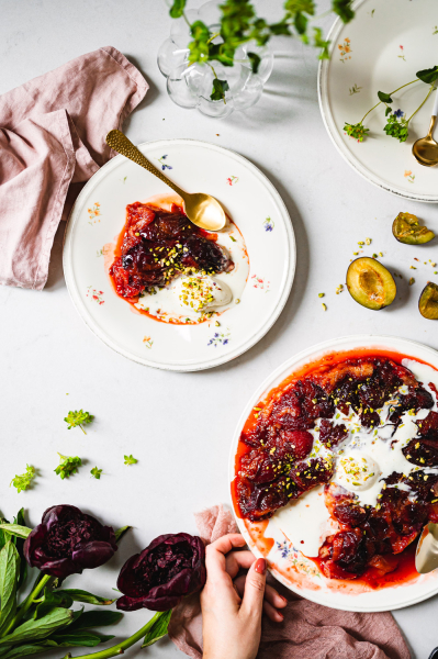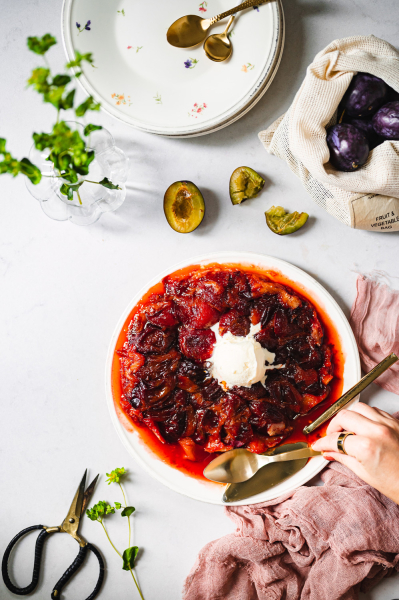 Tradiční francouzský koláč si zamilujete! Jako spousta slavných receptů vznikl náhodou, kdy jedna ze sester Tatinových zkazila klasický apple pie a vznikl z toho tento obrácený koláč. V jejich hotelu ho pak podávaly jako místní specialitu a díky jeho nedokonalé dokonalosti si ho oblíbil celý svět. Já jsem ho tentokrát vyzkoušela se švestkami a byla to bomba! 🙂