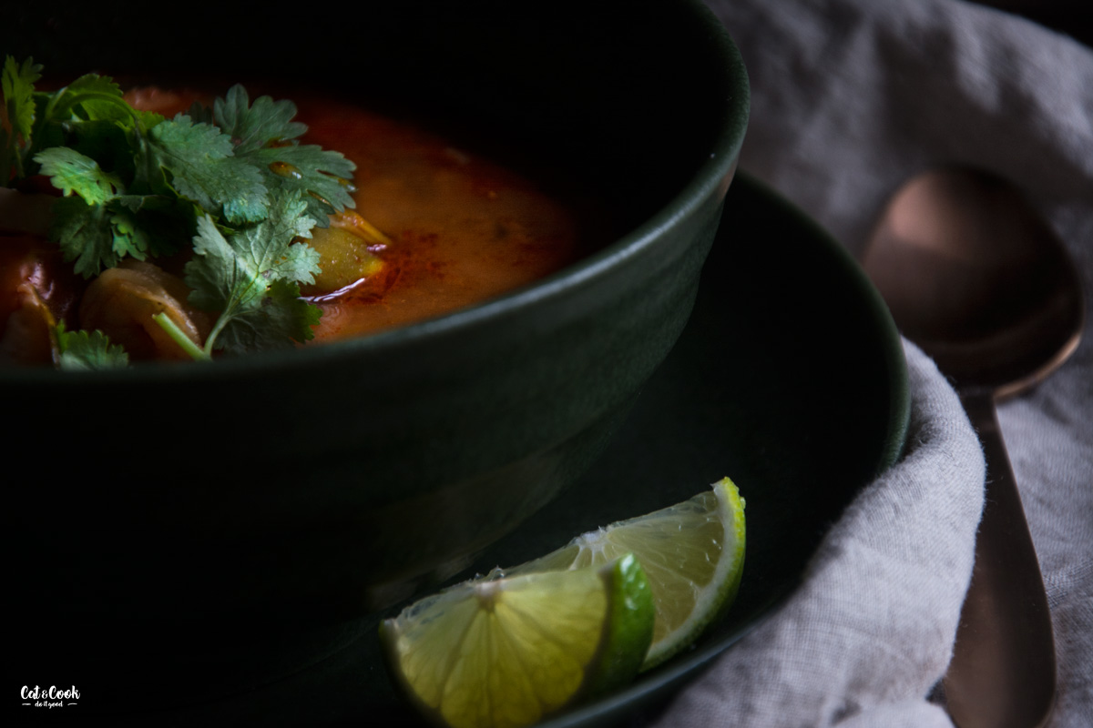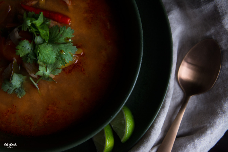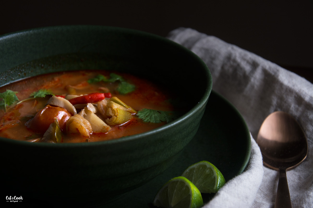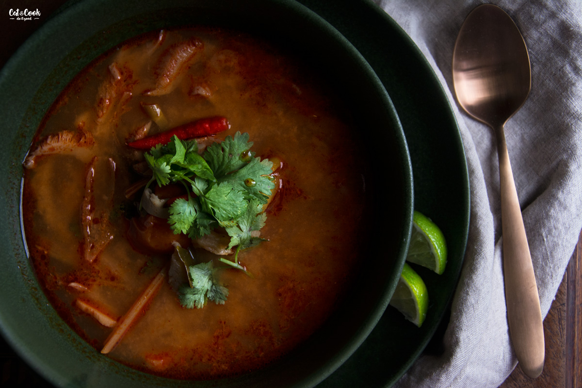 Pojďte se mnou objevit opravdovou svěží chuť této polévky! Zapomeňte na tom yum pastu nebo kokosové mléko. Zkuste tradiční verzi, čerstvé vstupní suroviny a poznáte rozdíl! Tom yum pasta obsahuje zbytečné suroviny jako je citronela, galangal nebo limetka, které dokážeme snadno nahradit čerstvými. Ačkoli se kokosové mléko mnohdy považuje za základní surovinu pro tuto polévku, vůbec tomu tak není! V Thajsku se dělá buď úplně bez mléka nebo se používá tzv. nom kream thiam neboli kondenzované neslazené mléko.