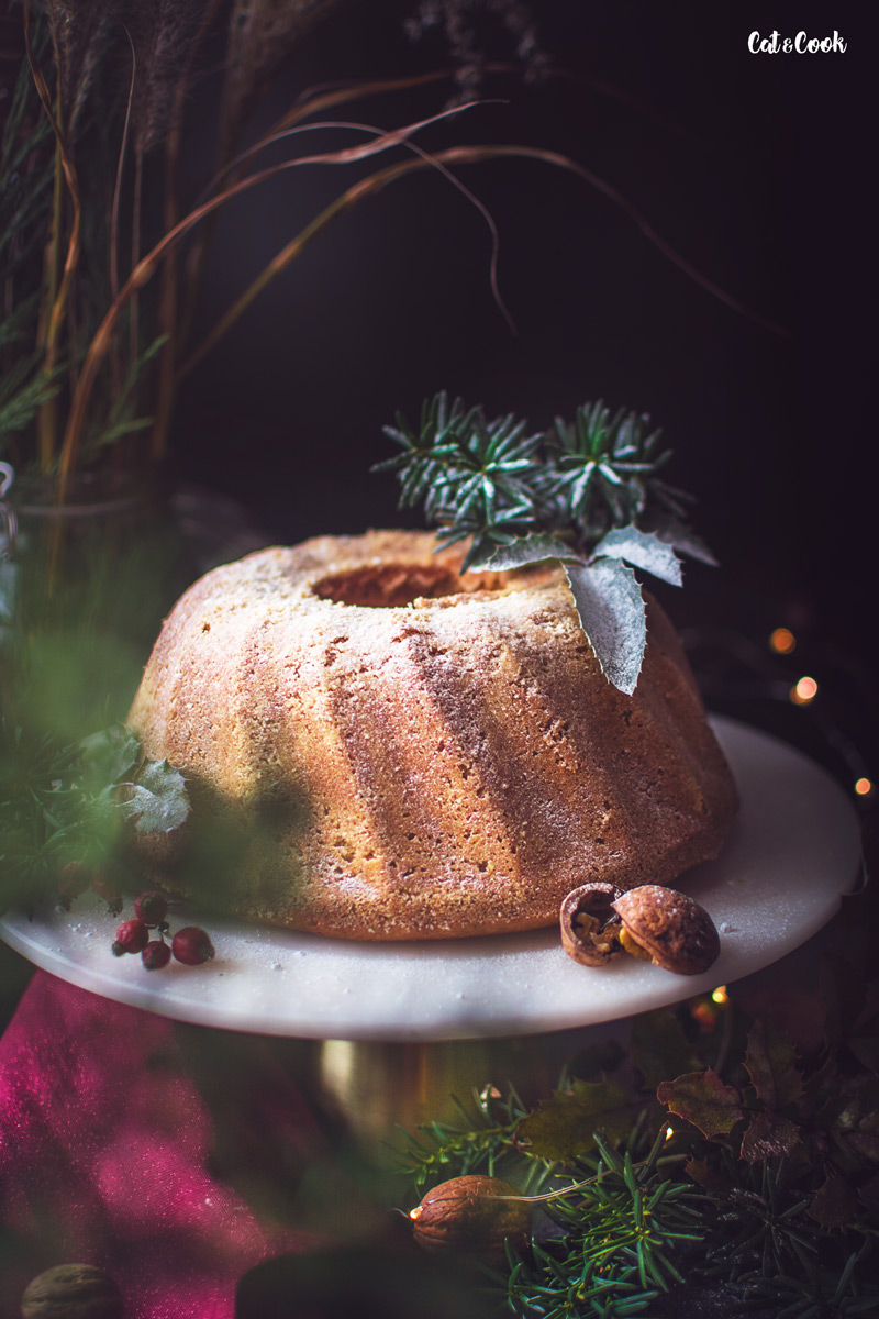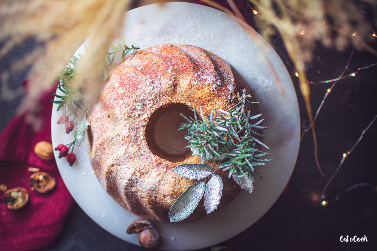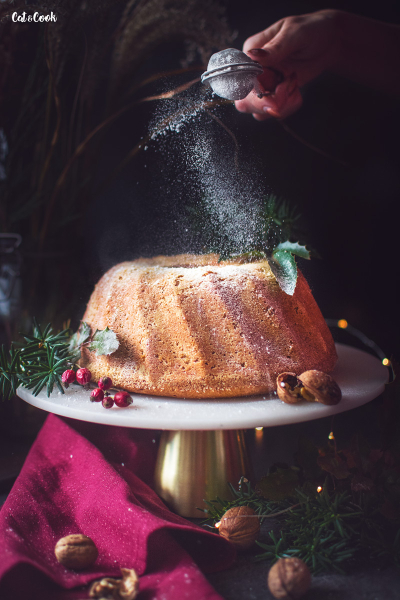 Až bude bábovka upečená, vyndejte ji z trouby a počkejte 2 – 3 minuty. Poté na otevřenou část položte talíř a pomocí utěrky a obou rukou ji na něj překlopte. Po vychladnutí ji pocukrujte moučkovým cukrem.
