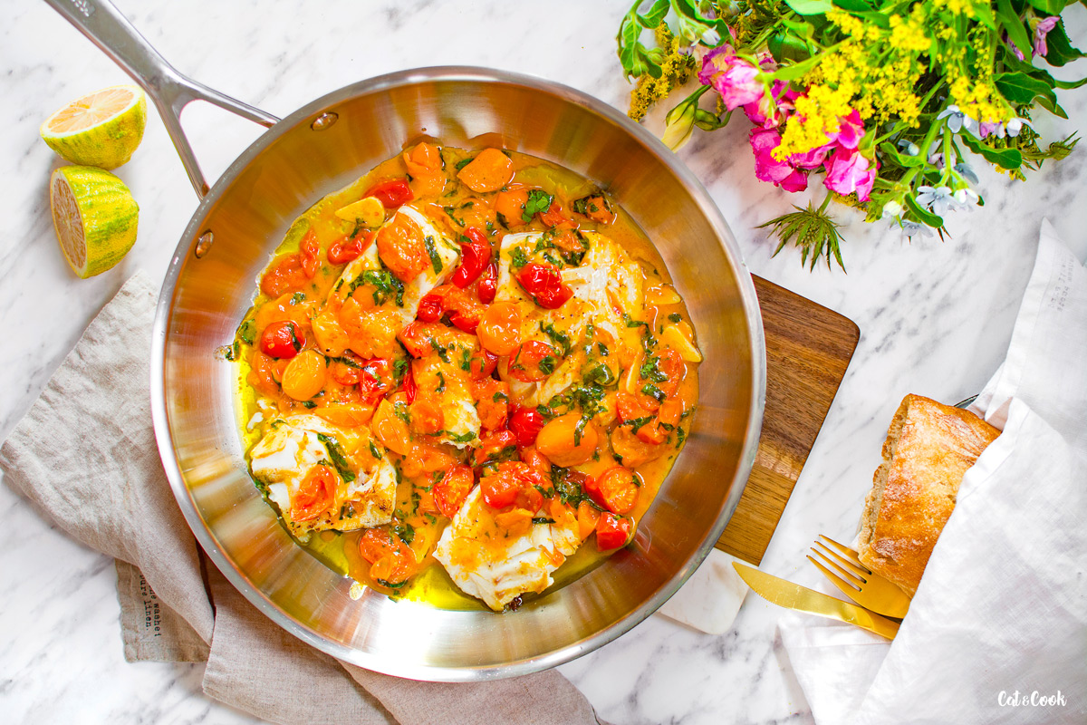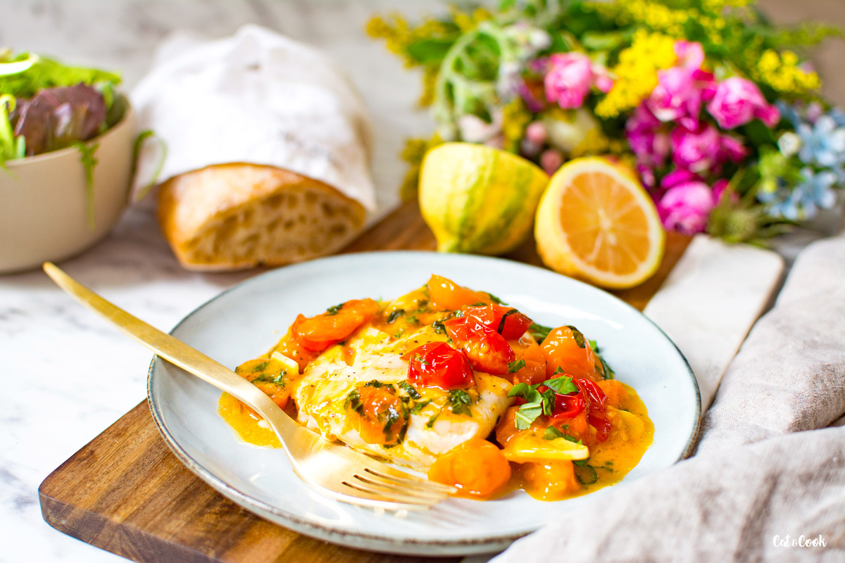 Rozhodla jsem se, že začnu jíst více ryb 🙂 Treska je jedna z mých nejoblíbenějších ryb, takže nemůže na mém blogu chybět 🙂 Zatím jste měli možnost se s ní setkat u fish and chips a letních rybích bagelů, nyní vám přináším trošku zdravější variantu, co z týhle rybky vykouzlit 🙂 Ještě jedno moje doporučení – zkuste si někdy koupit tresku právě z M&S, je prostě dokonalá!