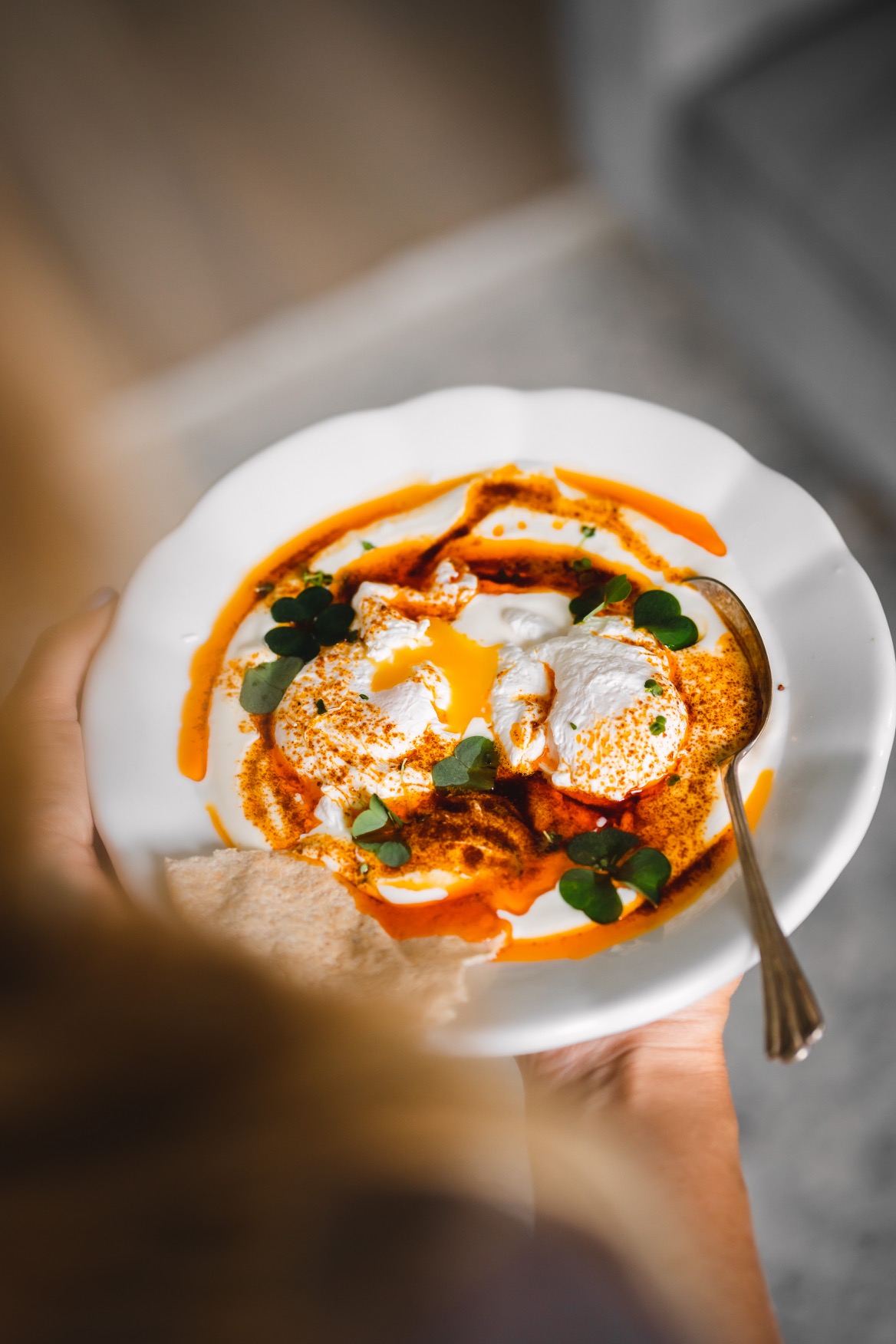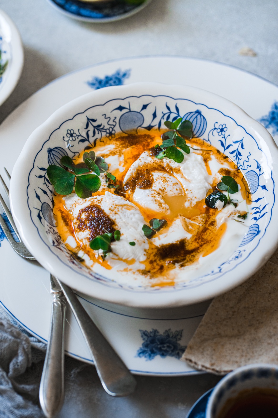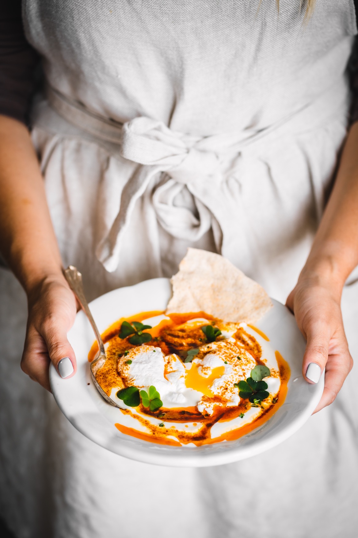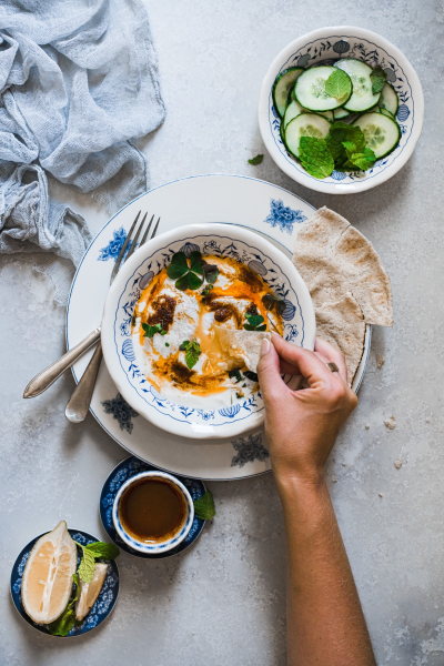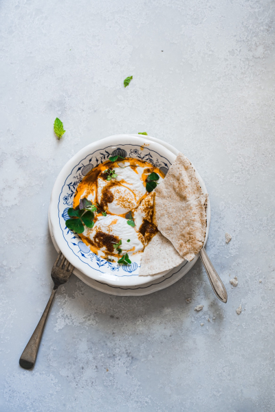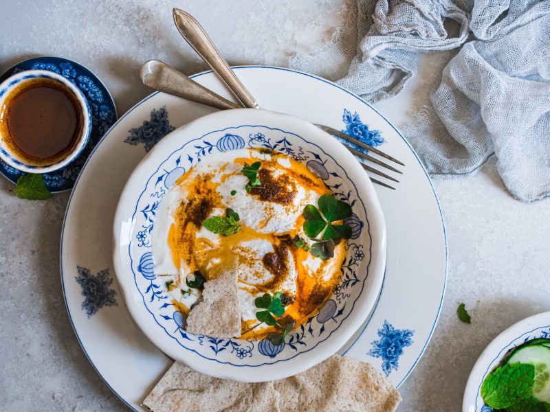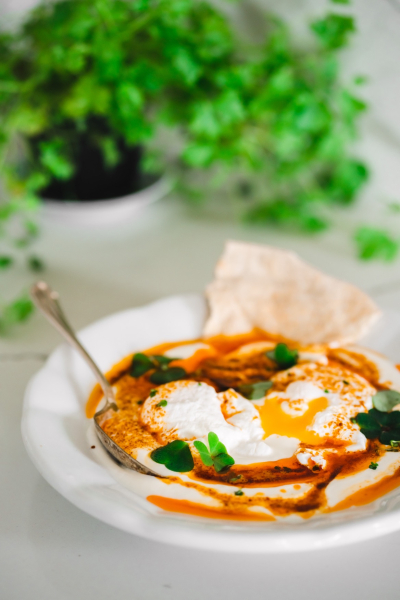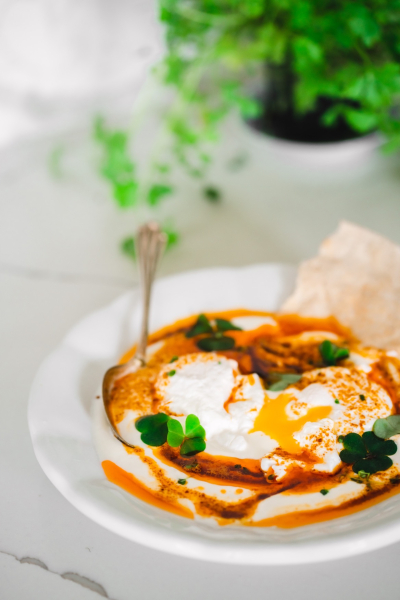 Obměna: Pokud nejste fanouškem vajec, můžete místo nich zkusit vařenou cizrnu. 🙂 I tato varianta patří mezi tradiční turecká jídla. Při použití rostlinné verze másla a jogurtu můžete recept pak přeměnit na veganský. 🙂