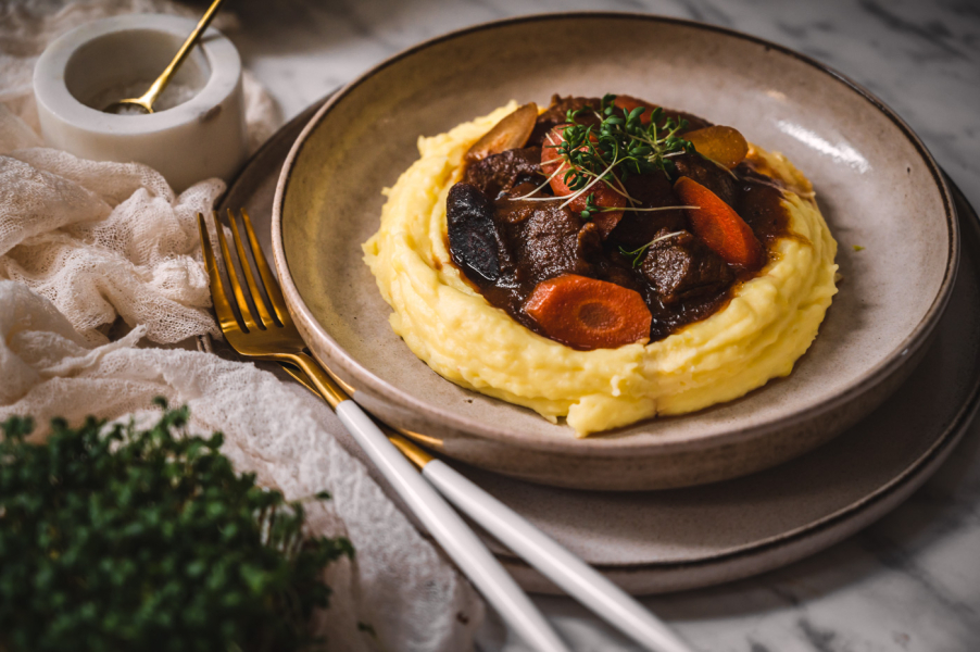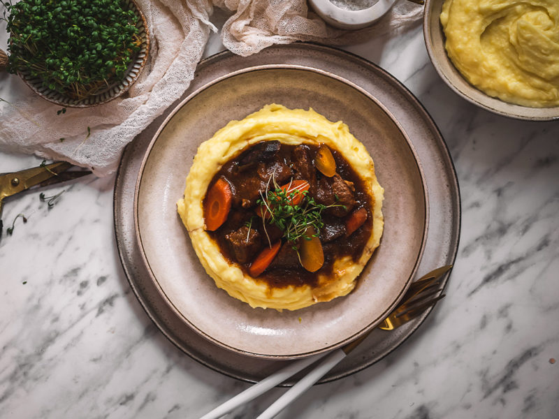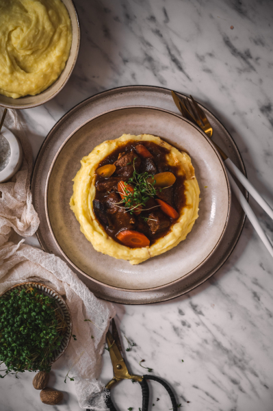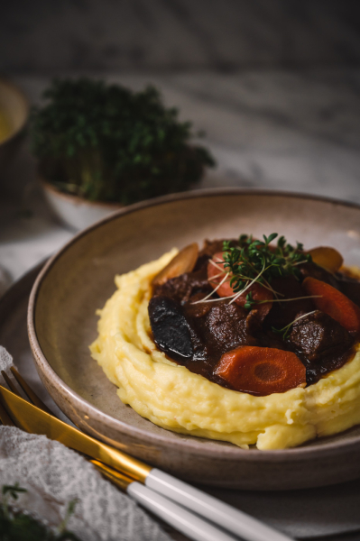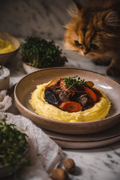 TIP: Na tento pokrm můžete použít i hovězí – je nutné použít nějaké prorostlé – loupanou plec, kližku nebo krk. Samozřejmě budete muset i přidat čas na dušení, počítejte s 1–2 hodinami navíc.