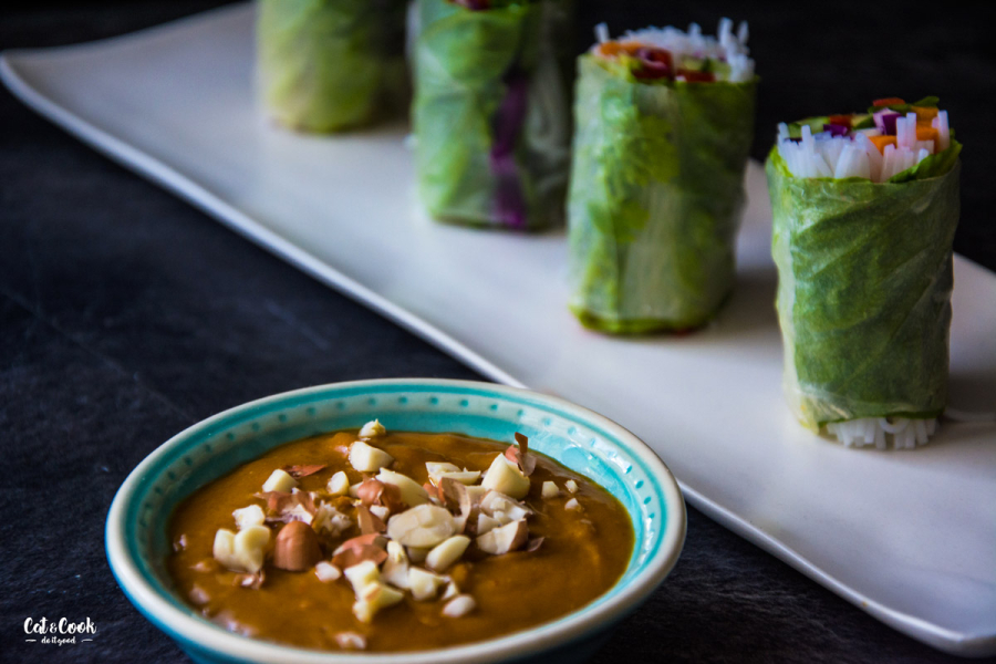 Já osobně k závitkům miluji arašídový dip. Jeho příprava je mega snadná! Chilli papričku zbav semínek (ideálně použij gumové rukavice nebo postupuj velice opatrně) a nasekej najemno. Použij pouze množství podle chuti. Já mám plechovou hubu, ale ne každý to tak má 🙂 Česnek nasekej najemno (můžeš odstranit střed – klíček, který způsobuje zápach z úst a těžkost od žaludku). Smíchej arašídové máslo, hoisin omáčku, sójovku a přidej chilli a česnek. Zřeď asi dvěma lžícemi vody a promíchej. Nesolené buráky nasekej nahrubo a ozdob dip.